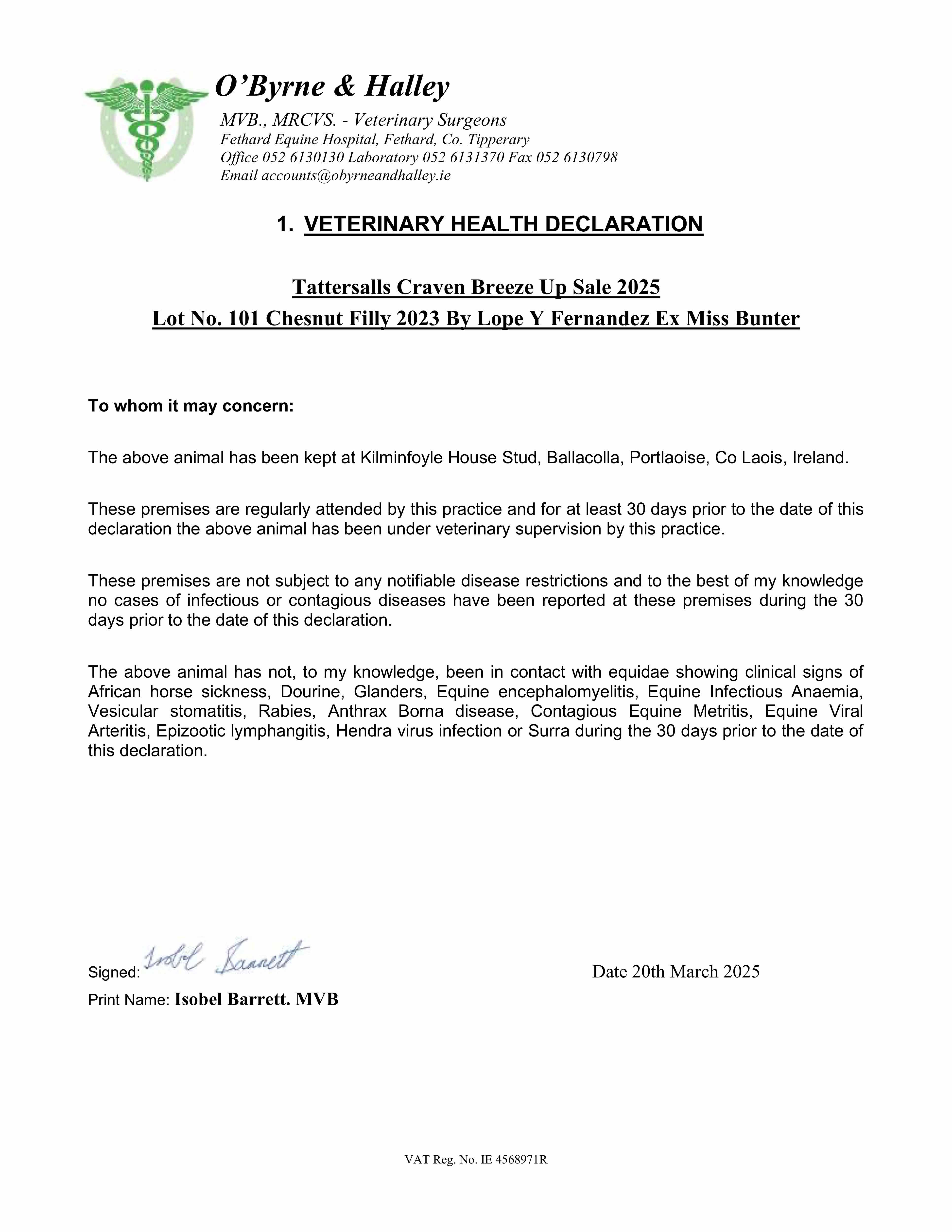 Consignor: Kilminfoyle House Stud, Ireland (Agent)