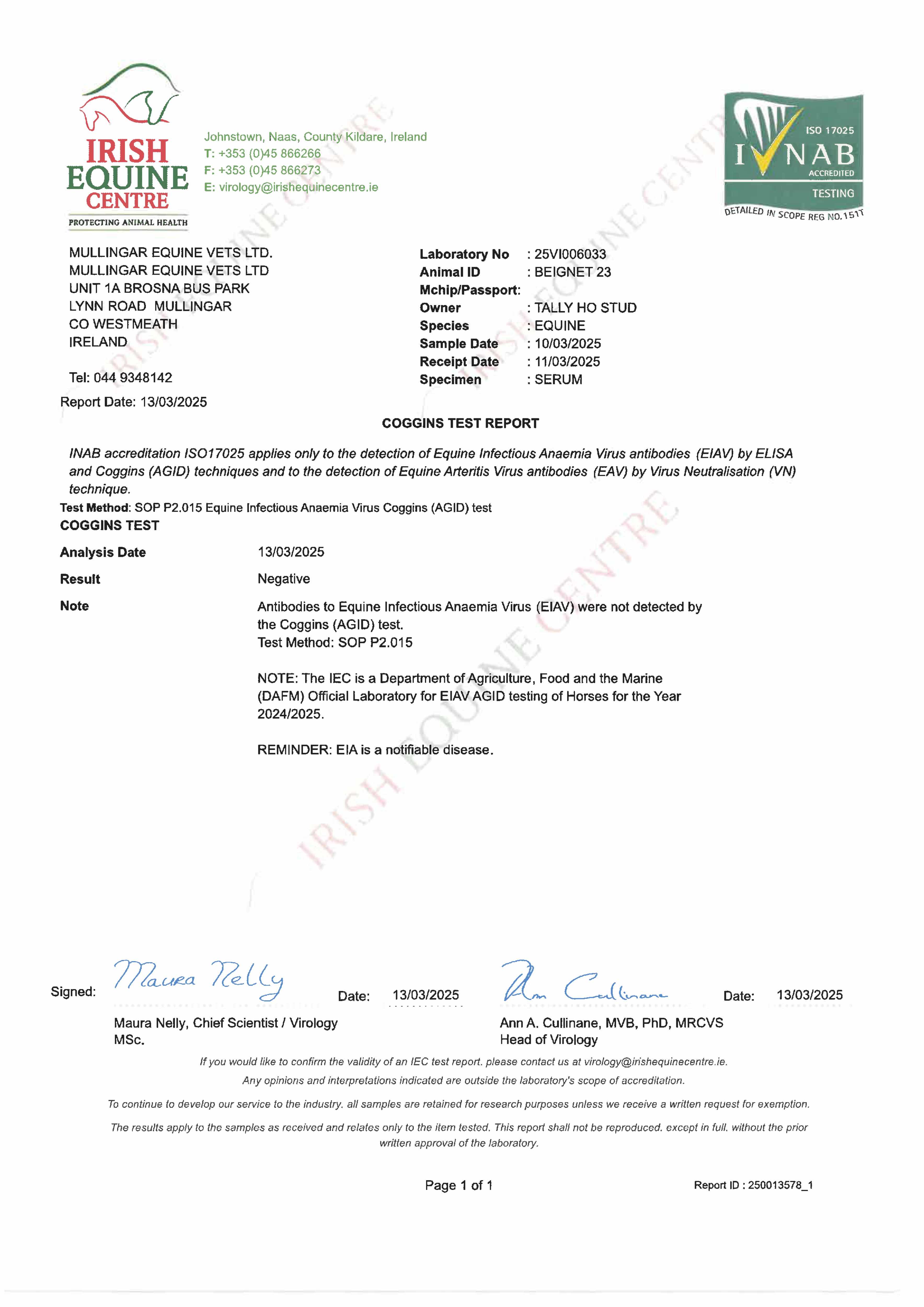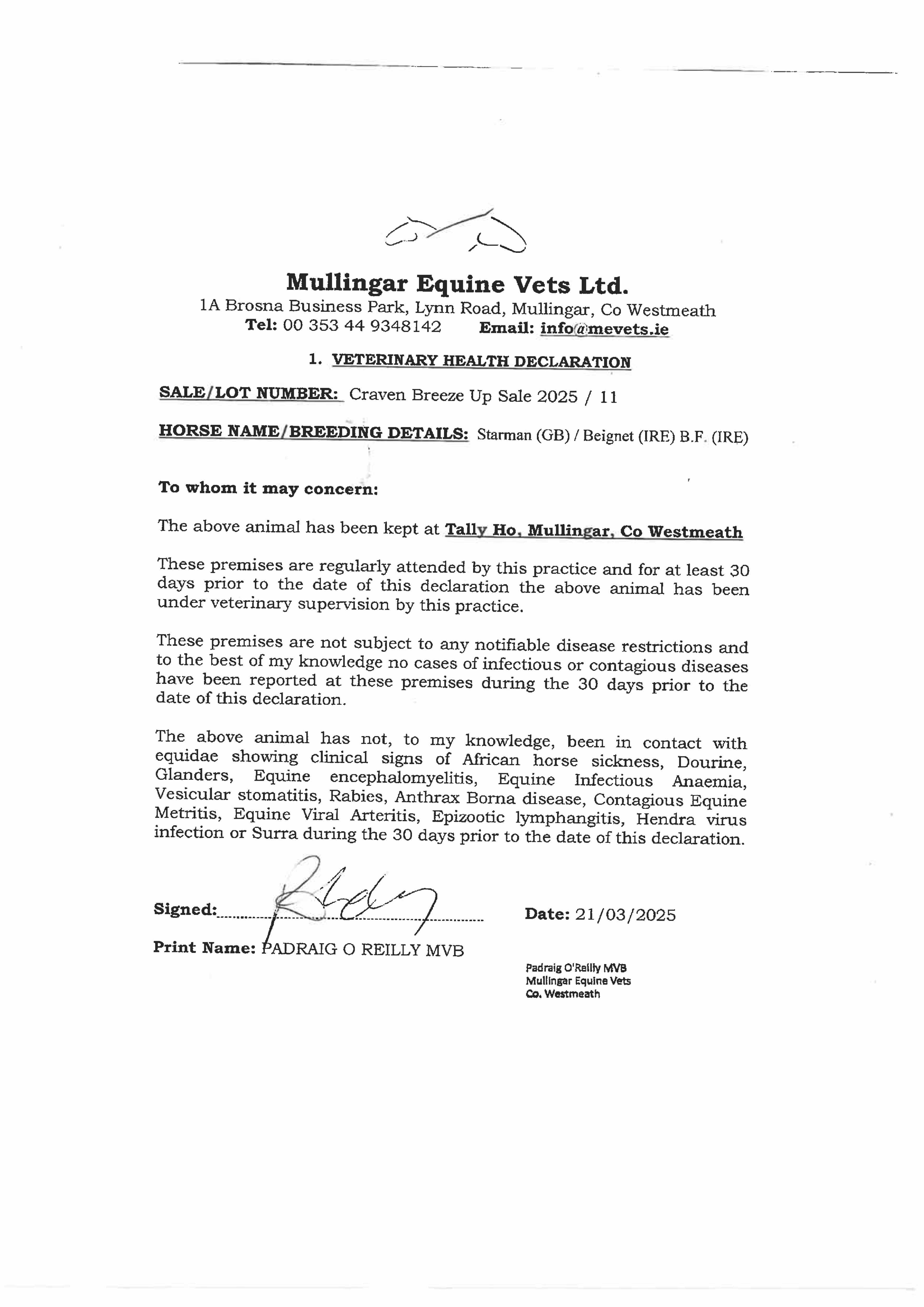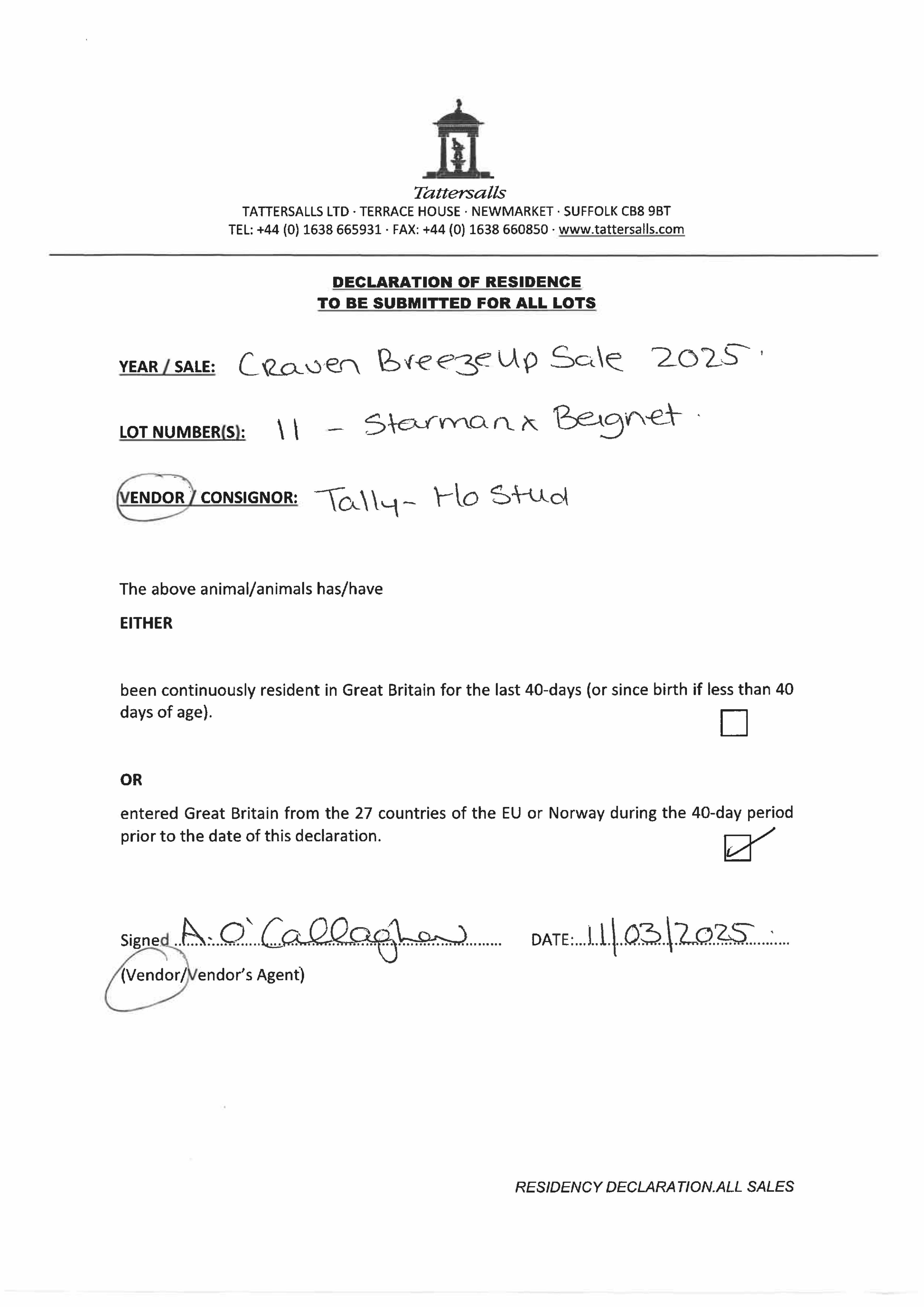 Consignor: Tally-Ho Stud, Ireland