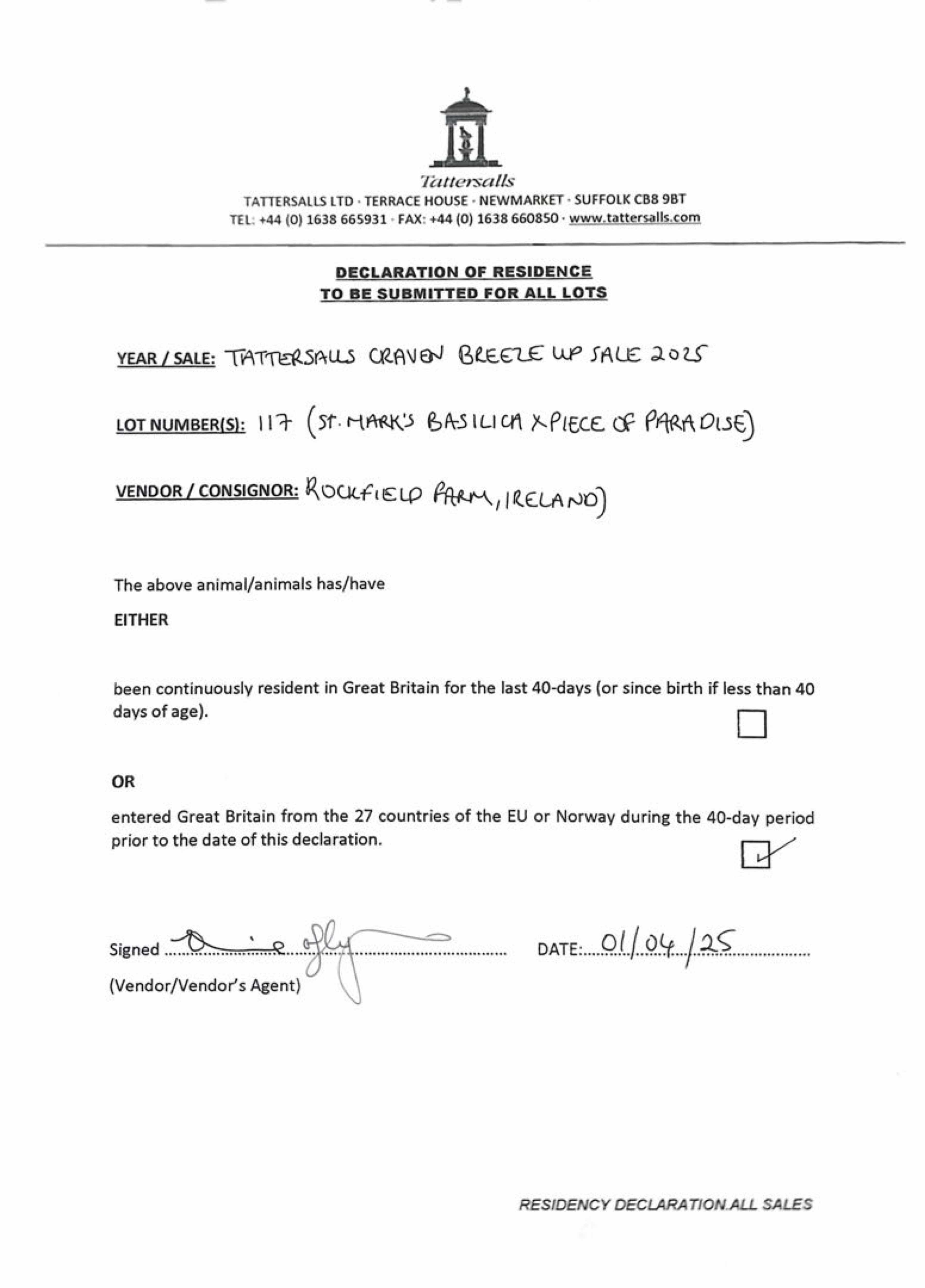 Consignor: Rockfield Farm, Ireland