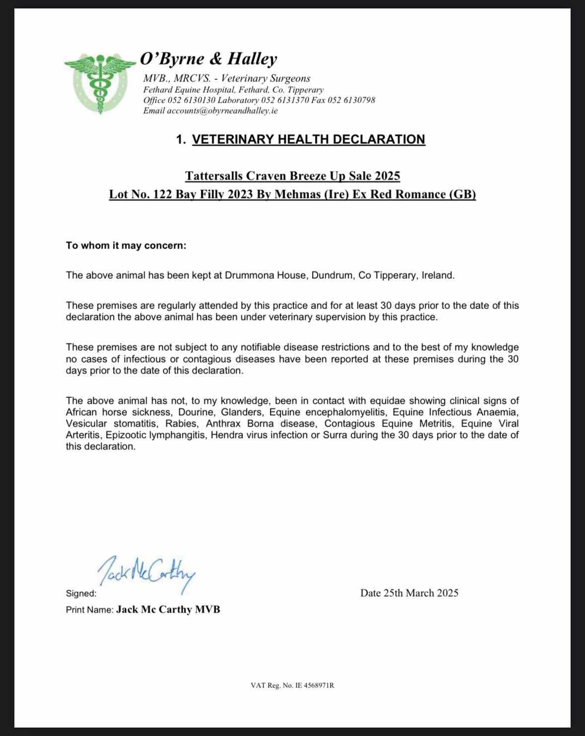 Consignor: Drummona House, Ireland