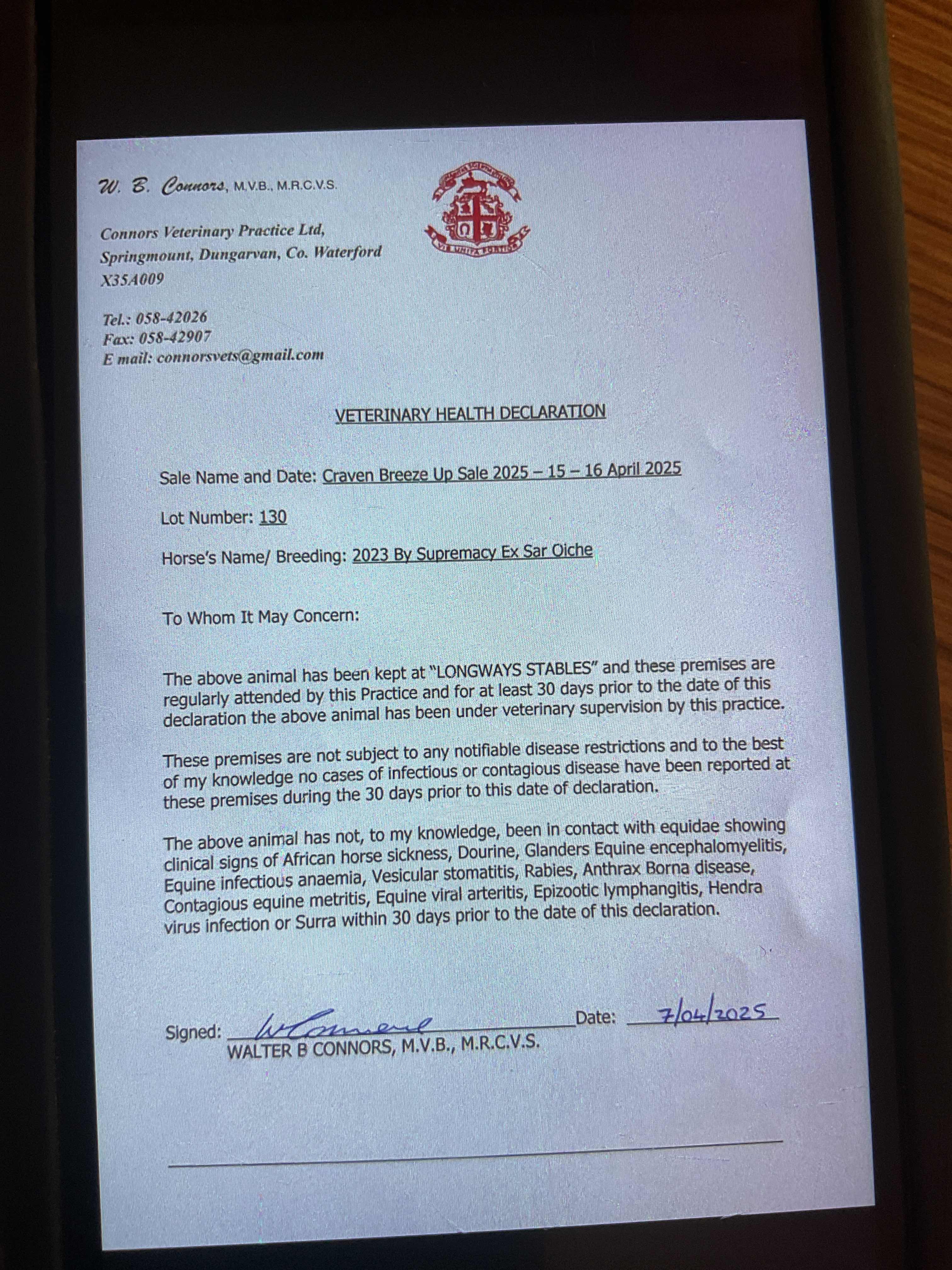 Consignor: Longways Stables, Ireland