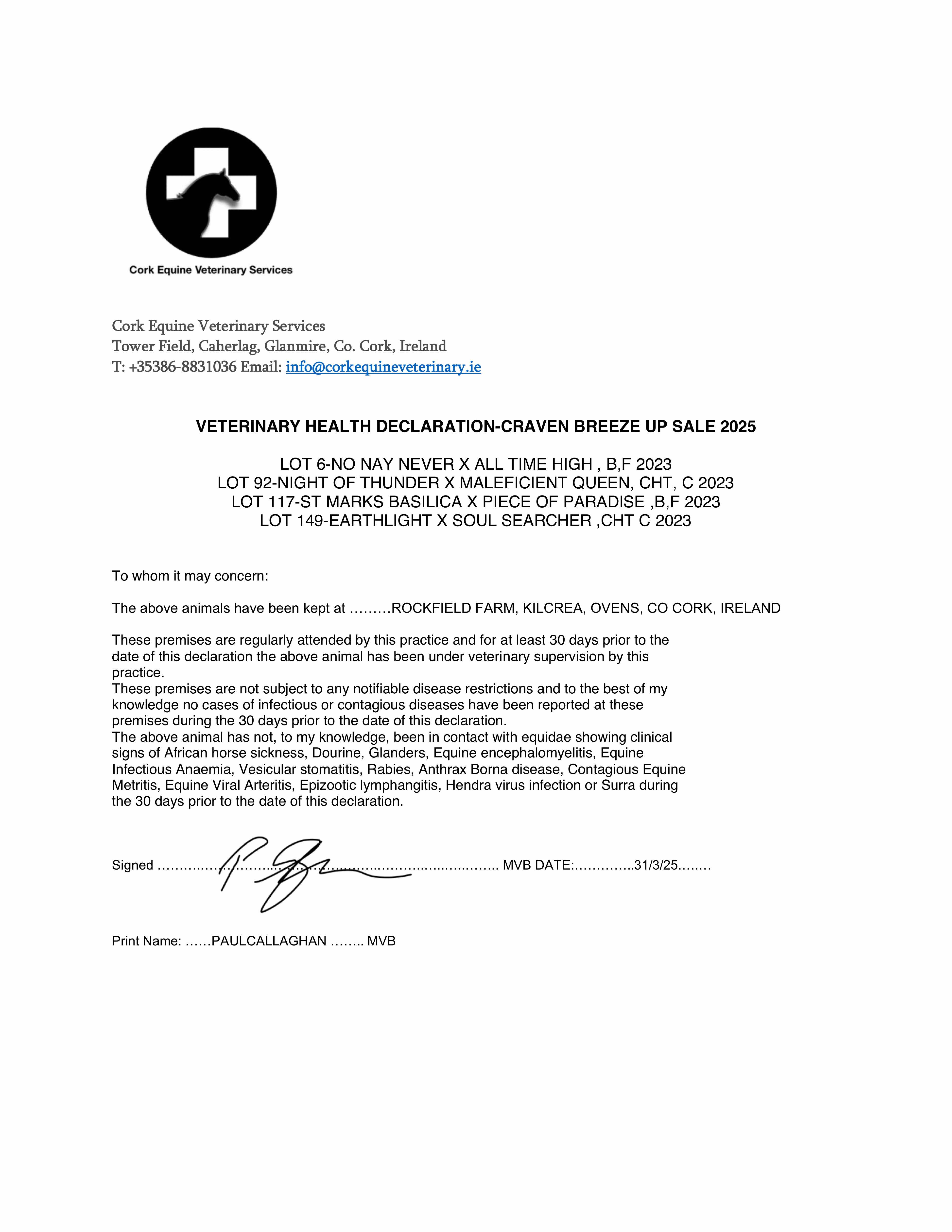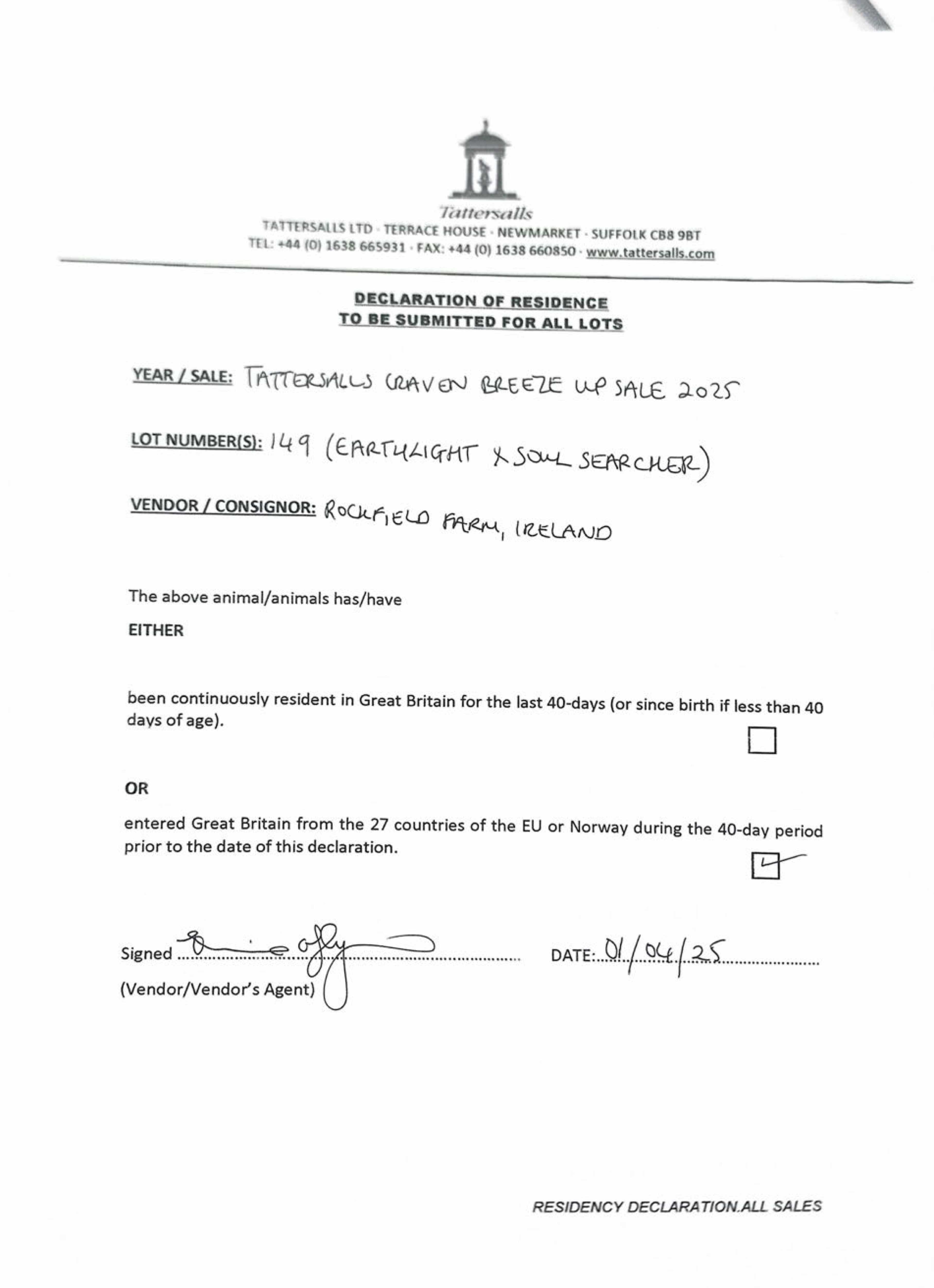 Consignor: Rockfield Farm, Ireland