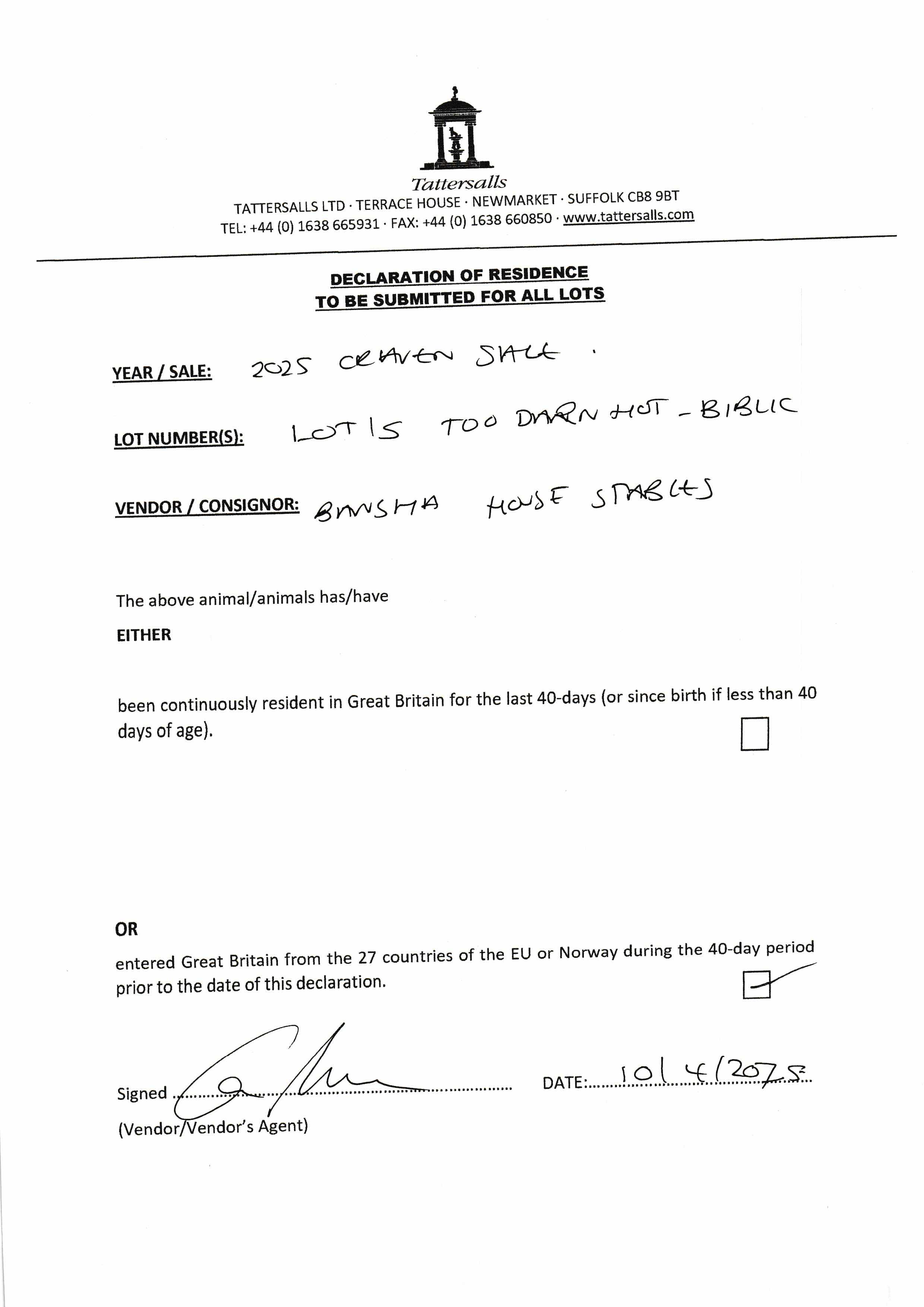 Consignor: Bansha House Stables, Ireland
