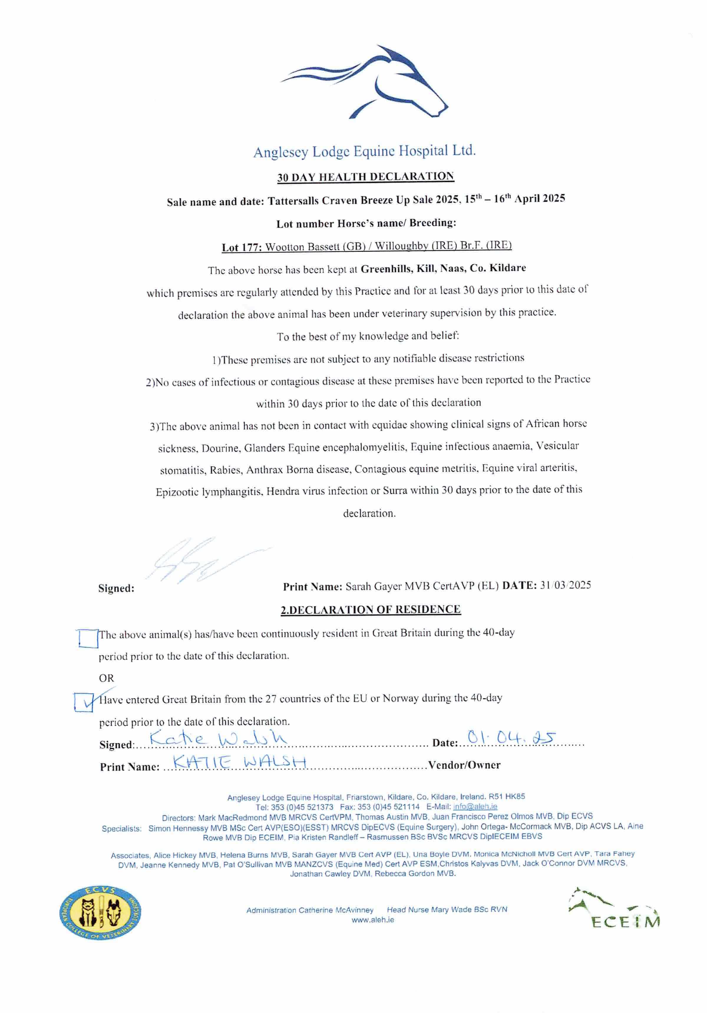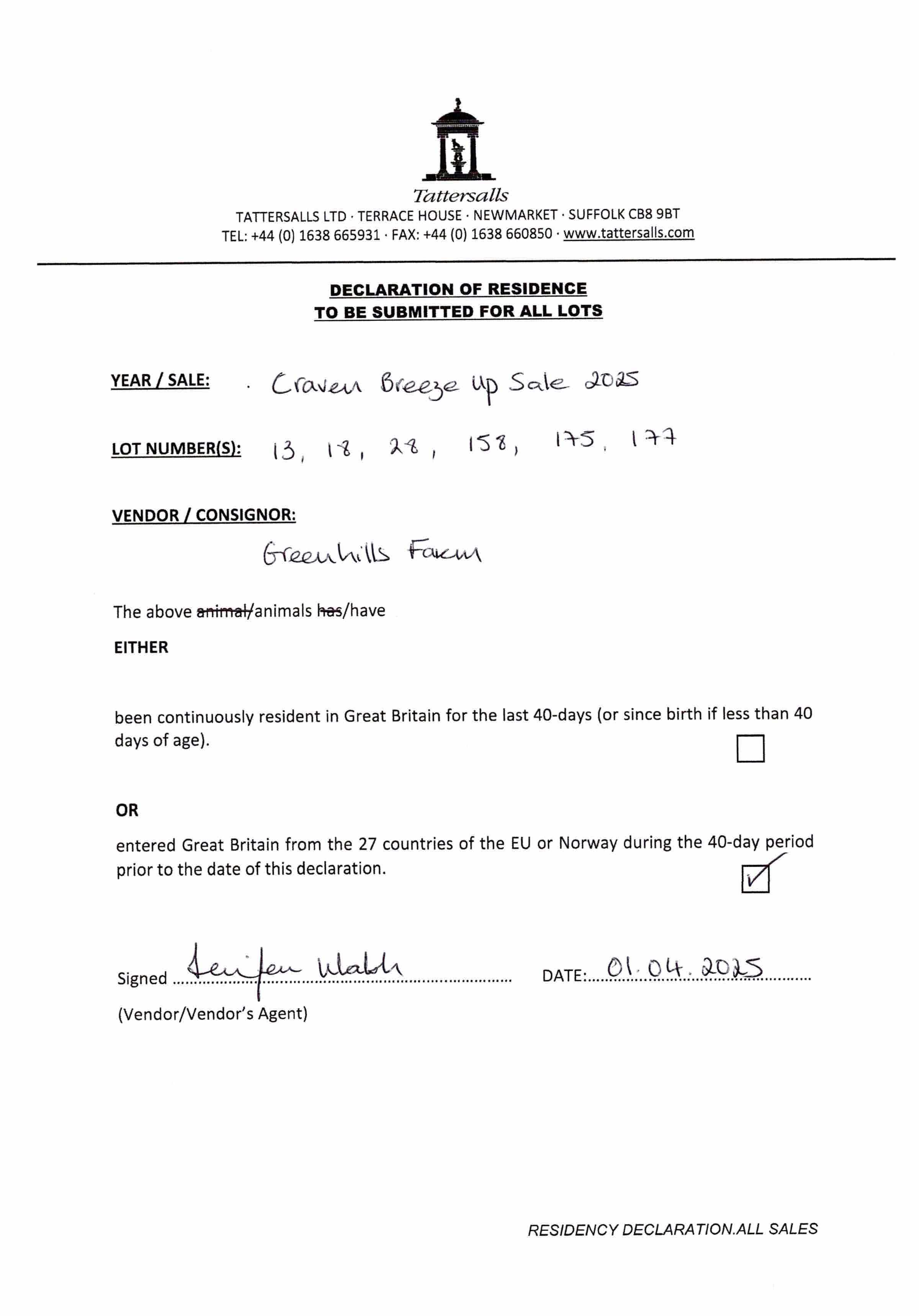 Consignor: Greenhills Farm, Ireland