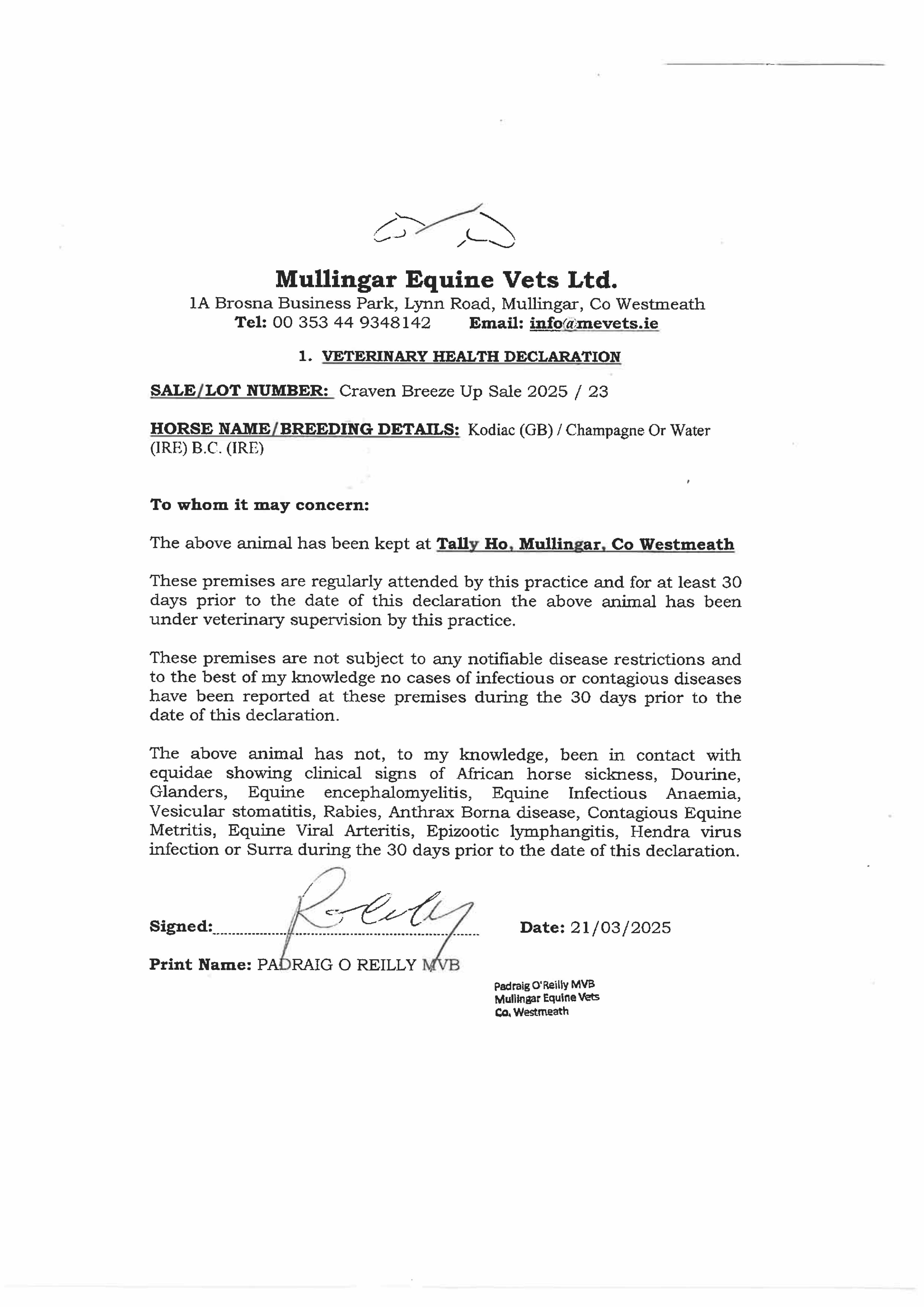 Consignor: Tally-Ho Stud, Ireland