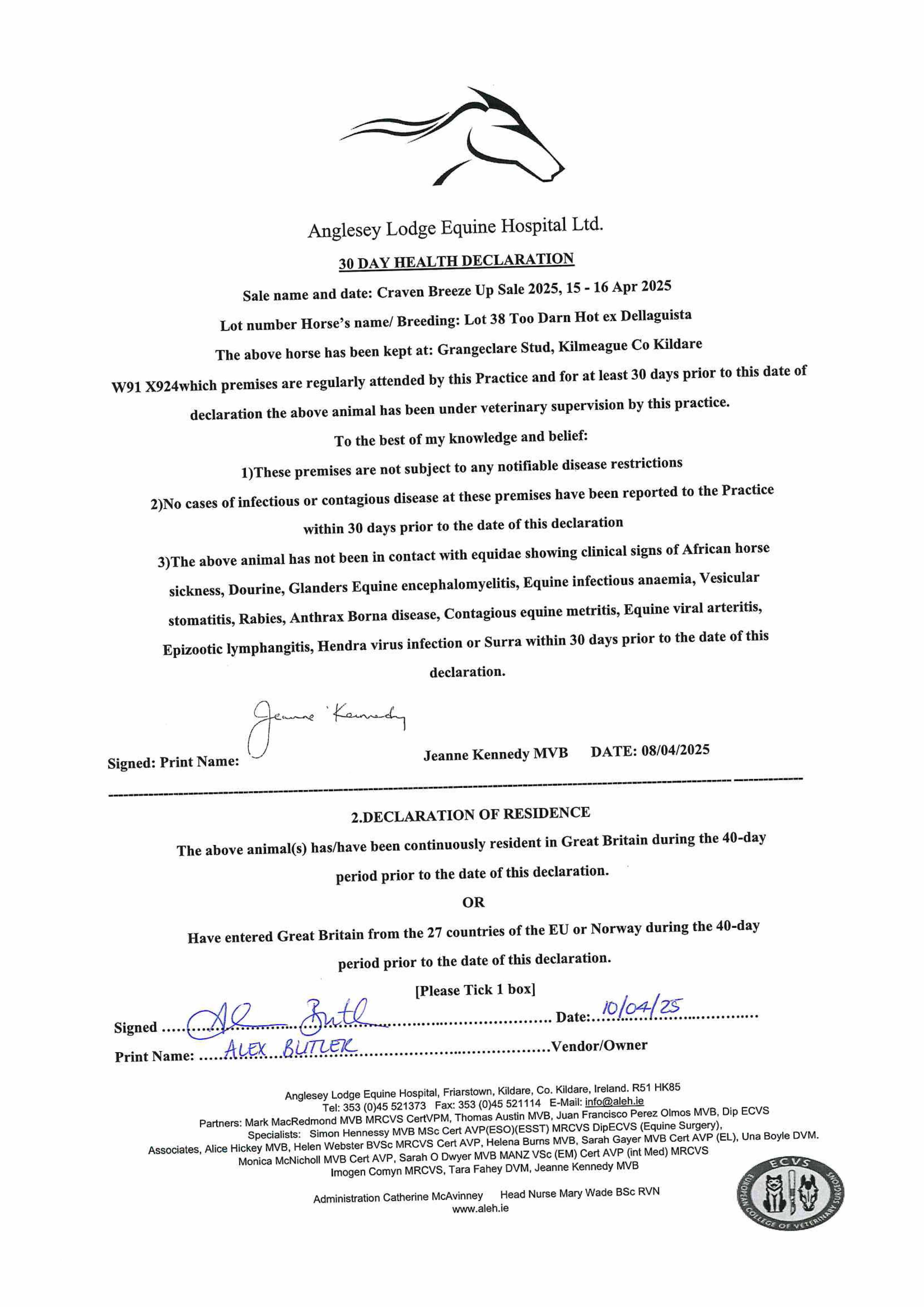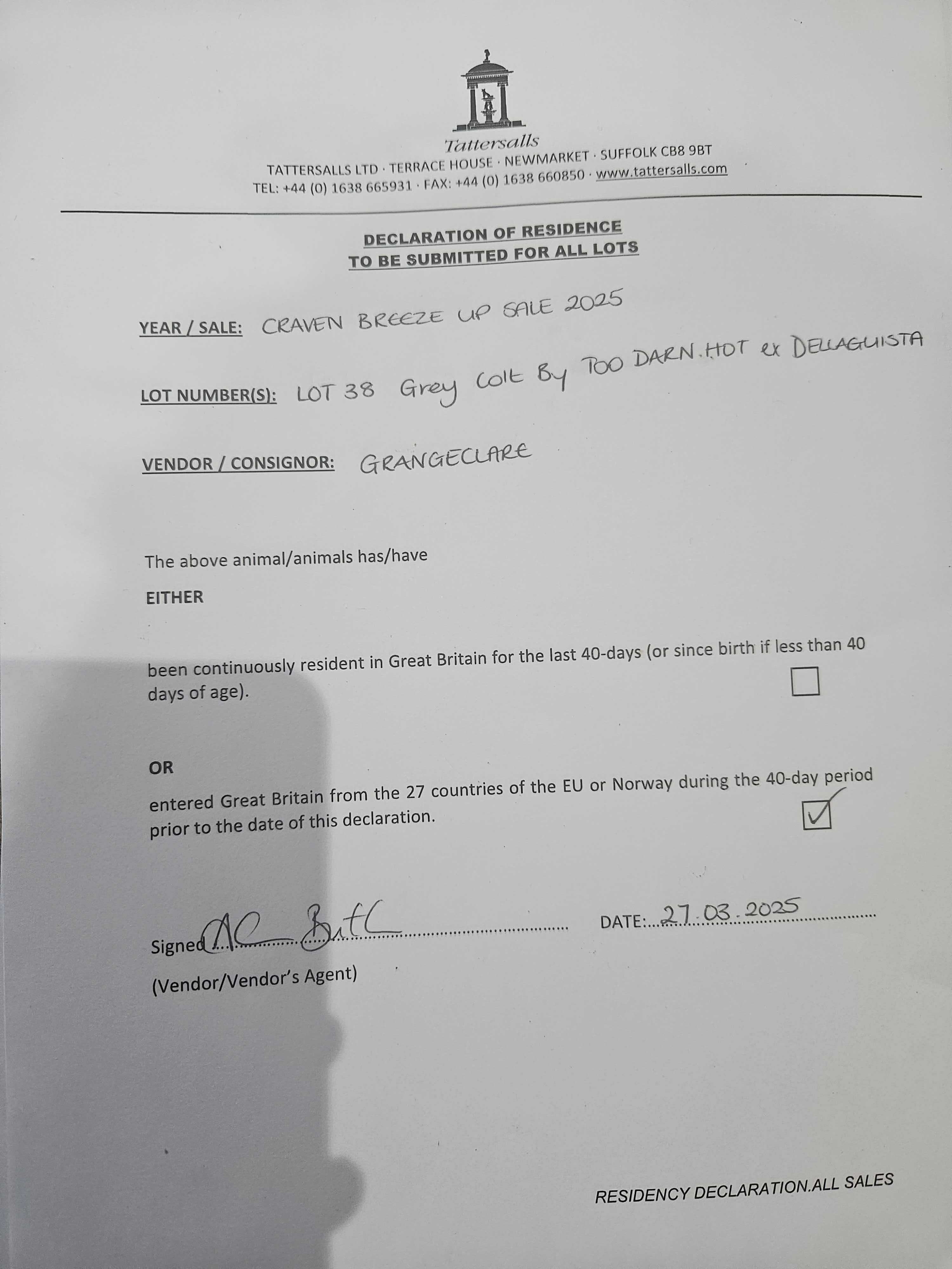Consignor: Grangeclare, Ireland