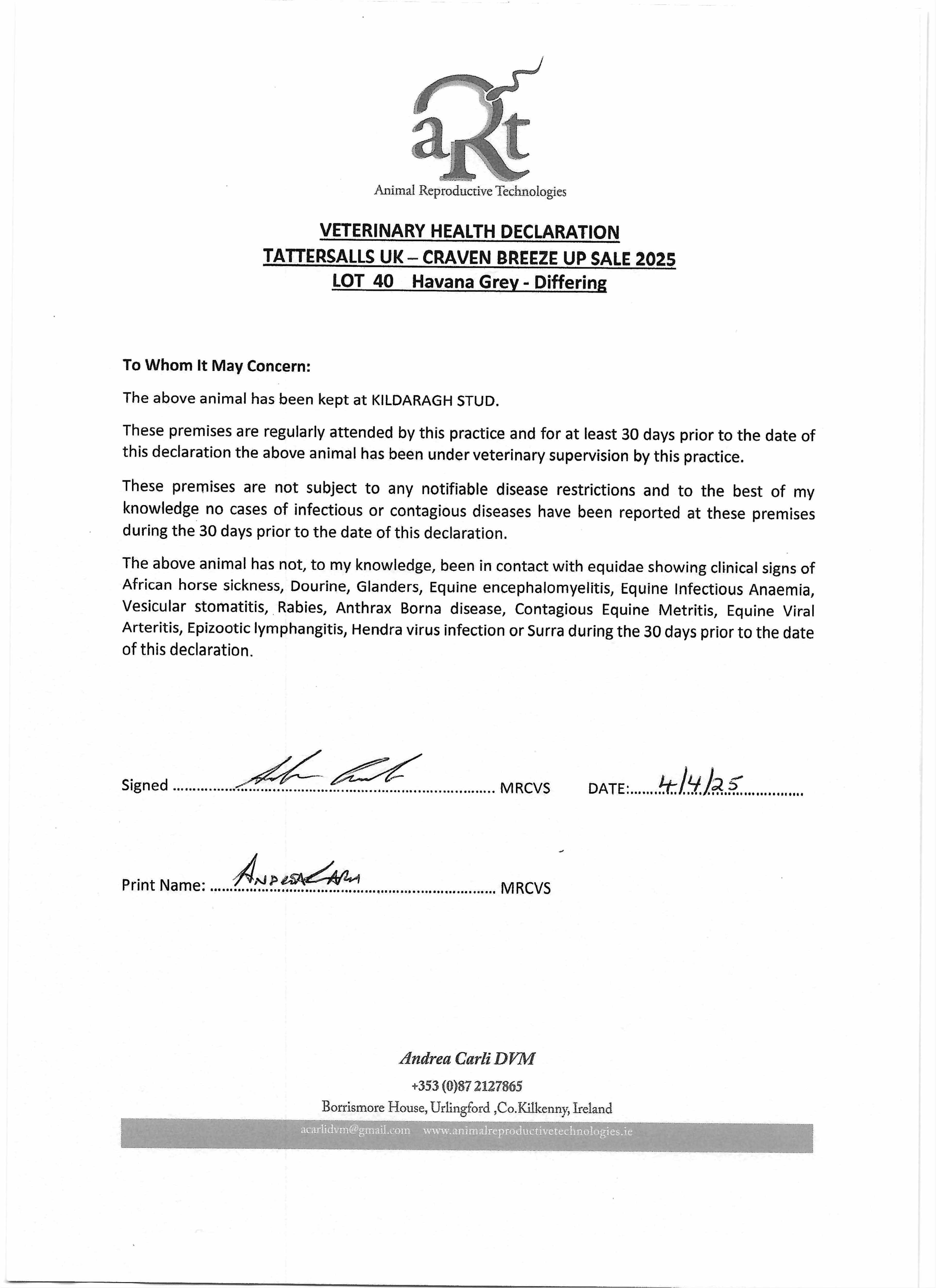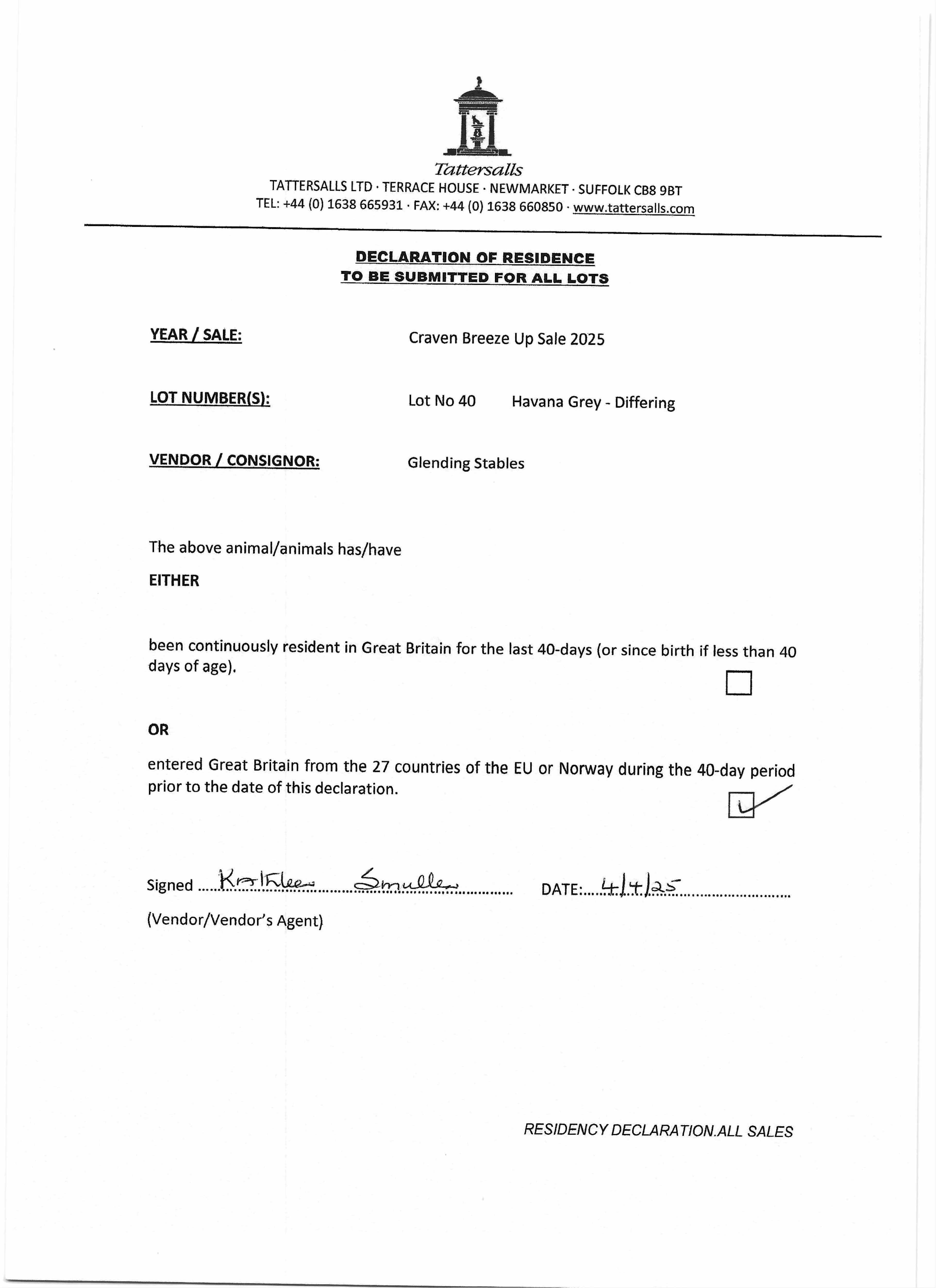 Consignor: Glending Stables, Ireland