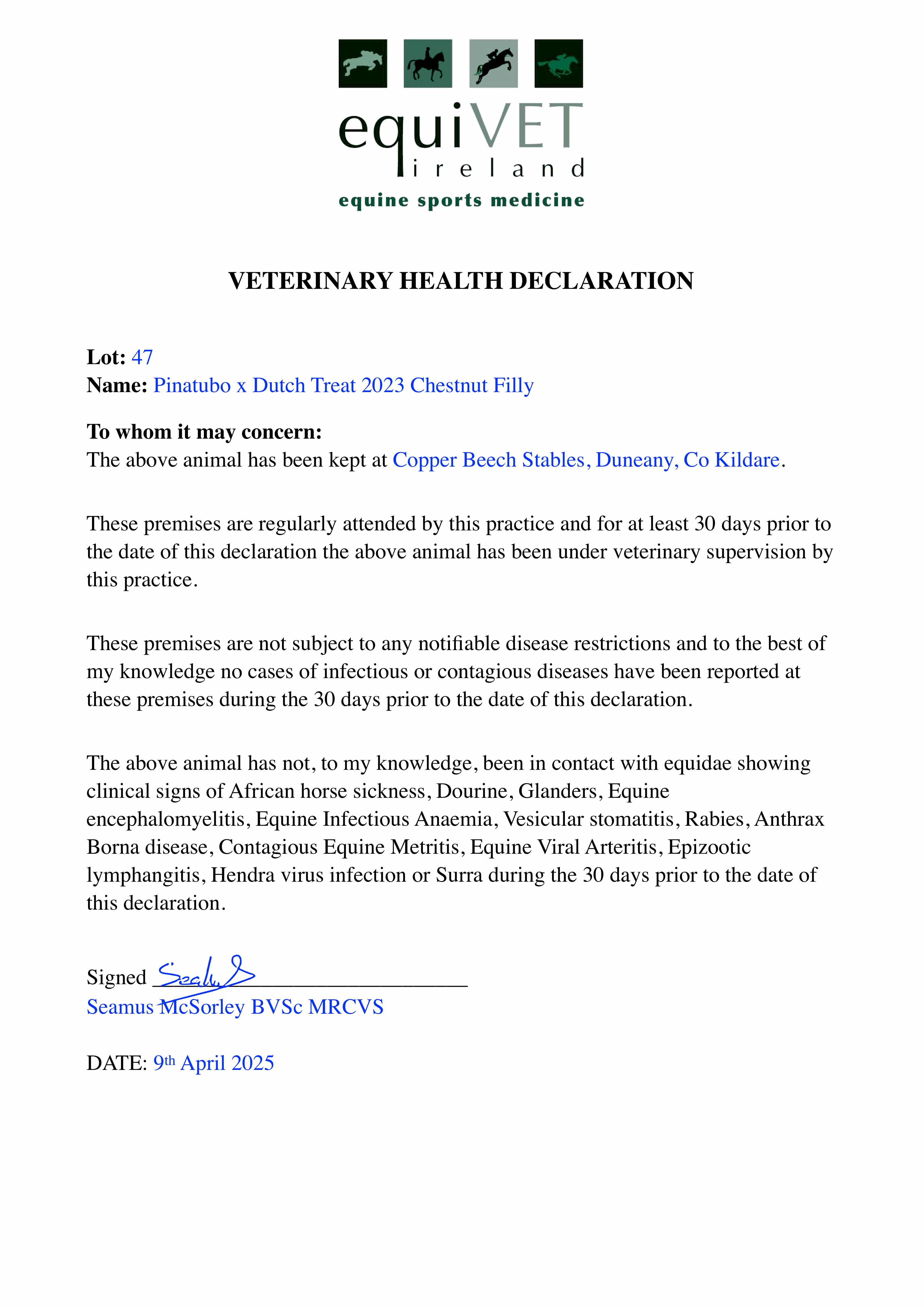 Consignor: C. F. Bloodstock, Ireland