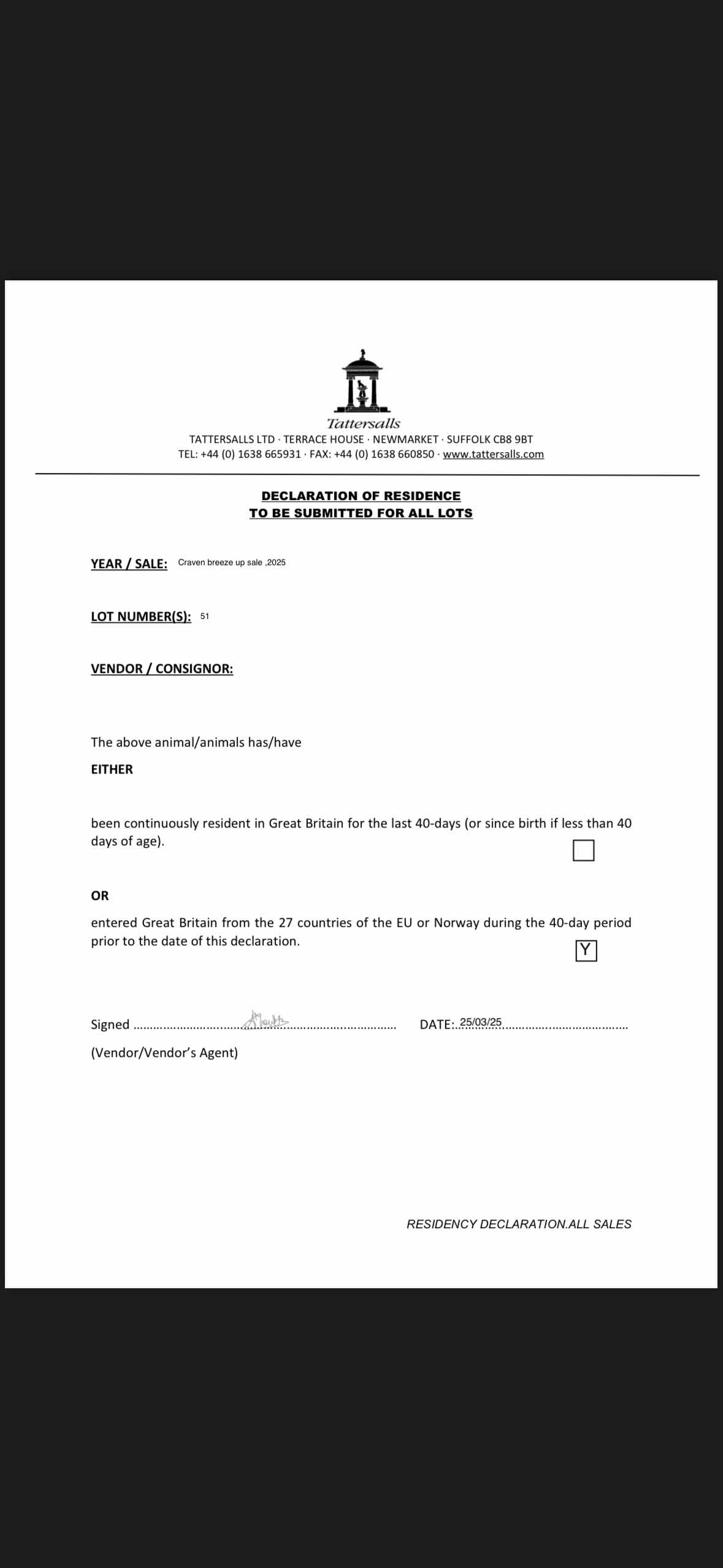 Online Sale - 19th November 2025 lot 100, Urloxhey Stables (R. Newland & J. Insole)=>Lot Not Sold 900 gns