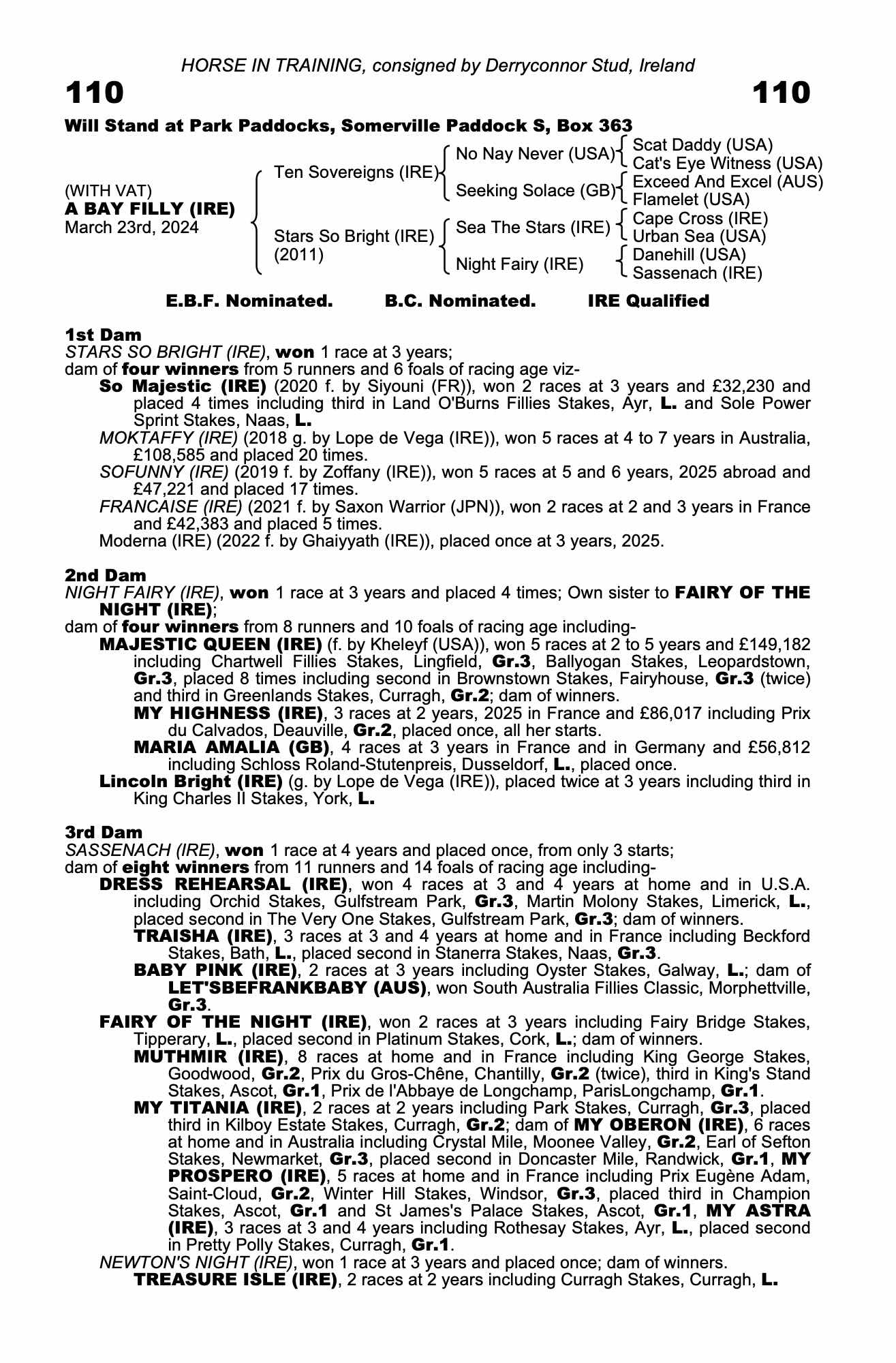 Consignor: Derryconnor Stud, Ireland