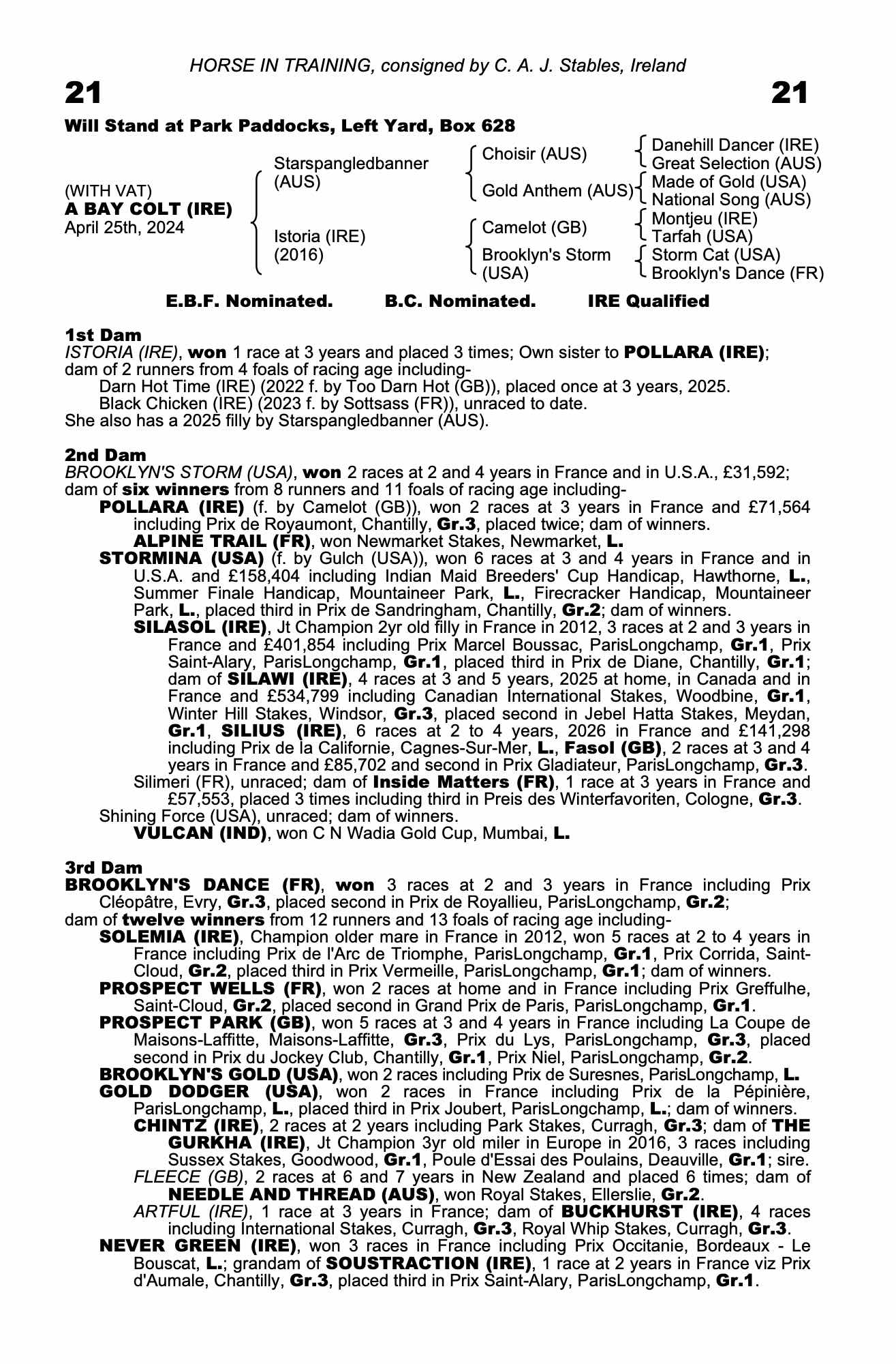 Consignor: C. A. J. Stables, Ireland
