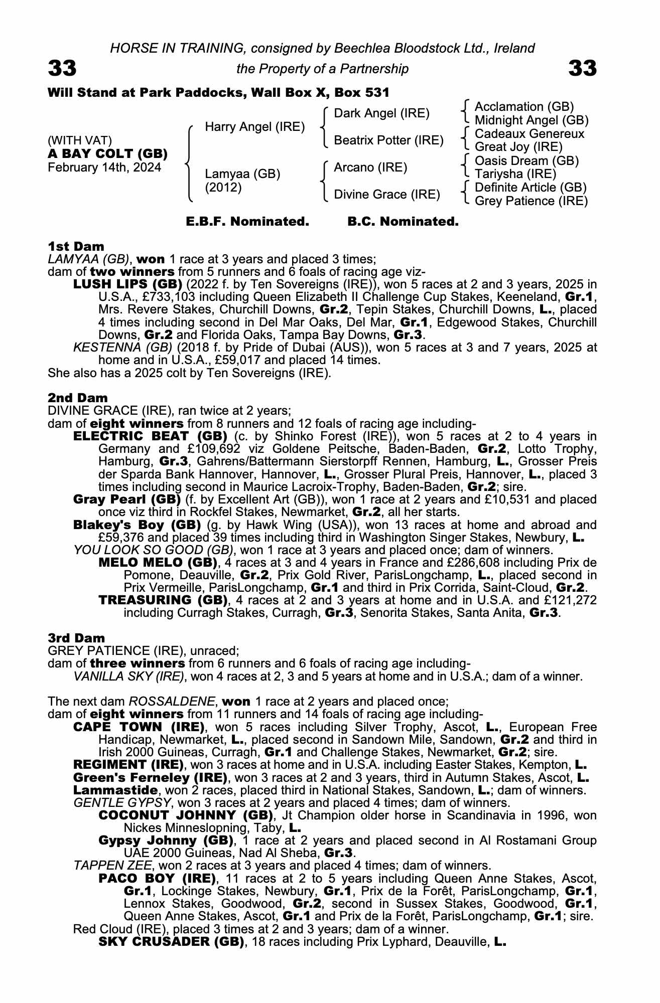 Consignor: Beechlea Bloodstock Ltd., Ireland