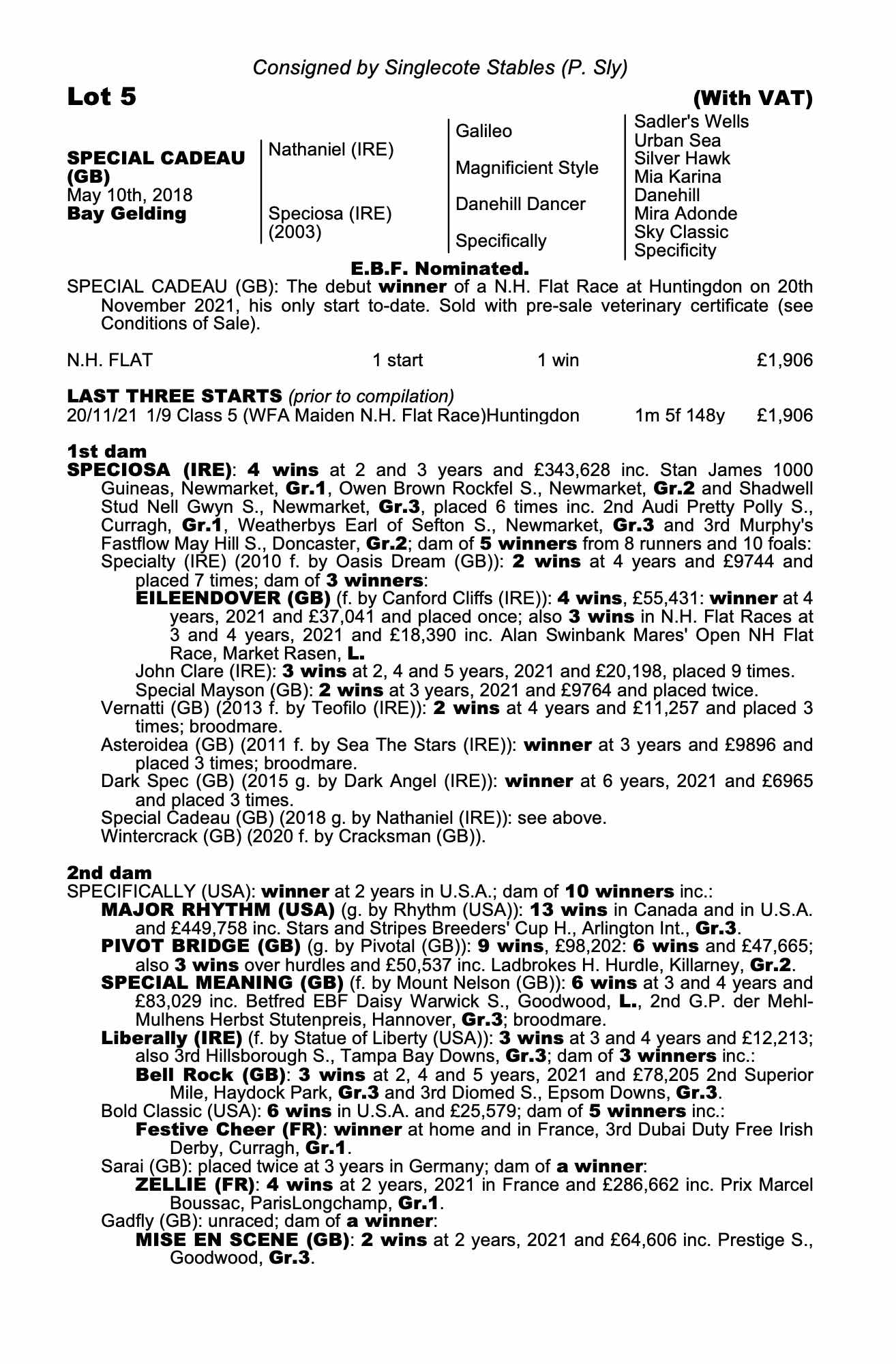 Special Cadeau could indeed be something a bit special. The son of Nathaniel out of the 1000 Guineas winner Speciosa ran out the comfortable winner of the Junior NH Flat Race at Huntingdon on 20th November, his only start to date. He travelled strongly through the contest and despite showing signs of greenness in the closing stages he won going away at the line. The close relation to Eileendover could be anything.