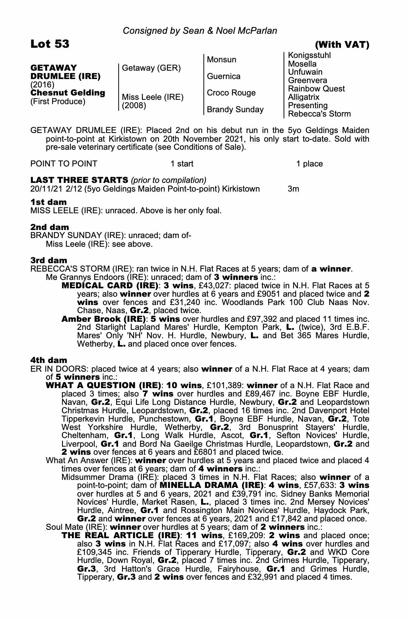 This is a thoroughly tough and game individual who spent the entire three mile trip of his Kirkistown maiden chasing the potentially high class Blackcauseway. At no stage throughout this process did he look like stepping back from the winner and held his position all the way to the line when beaten three lengths with a further six lengths back to the runner-up. It should be noted that the third had one previous run when not at all disgraced by My Mate Mozzie and the fourth had not been beaten far in a Moira maiden on debut suggesting this fellow posted a strong effort on this debut effort. His page includes some top national hunt performers such as The Real Article and What A Question.