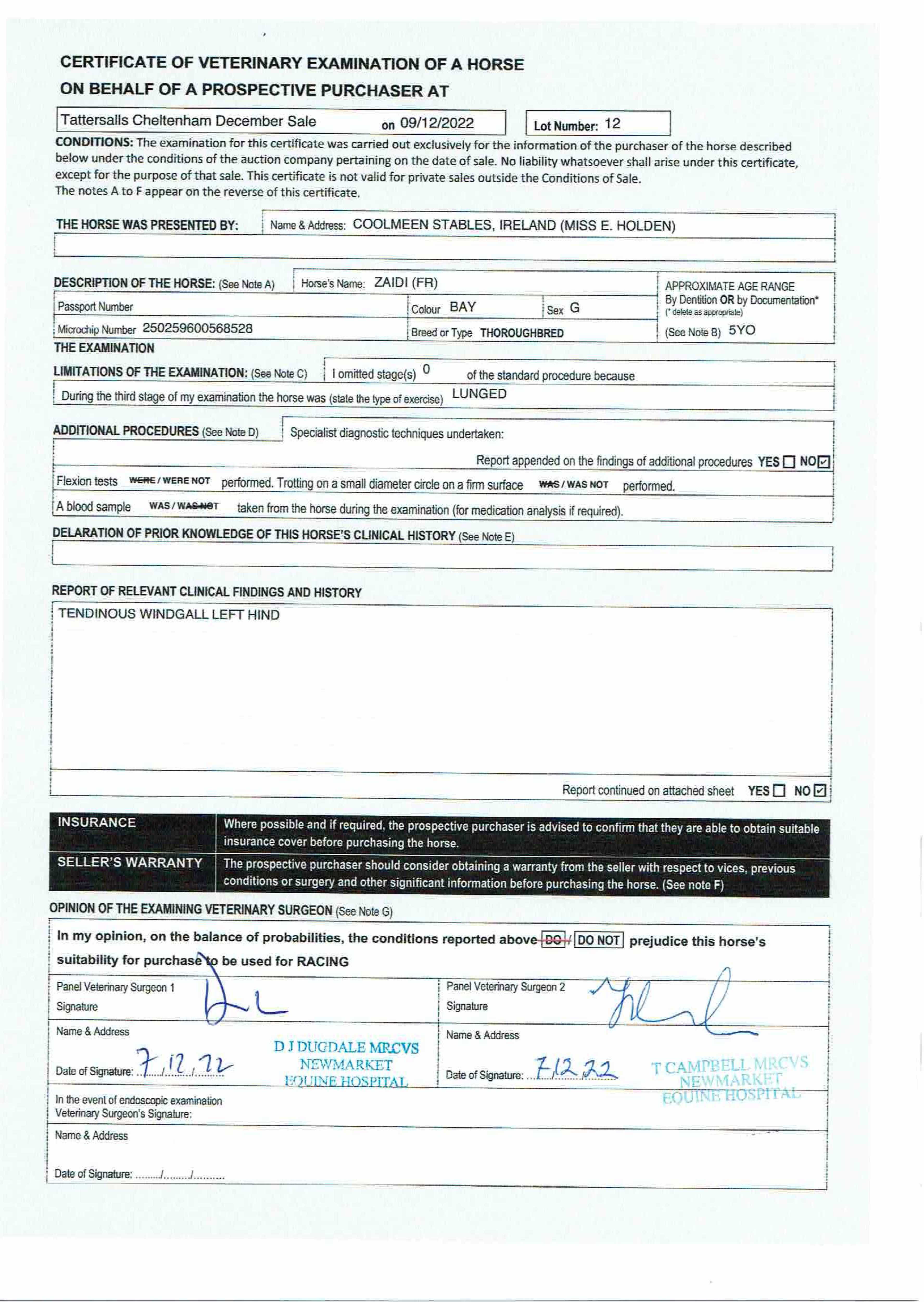 Cheltenham January Sale 2022 lot 17, Coolmeen Stables, Ireland (Miss E. Holden)=>Vendor £40,000