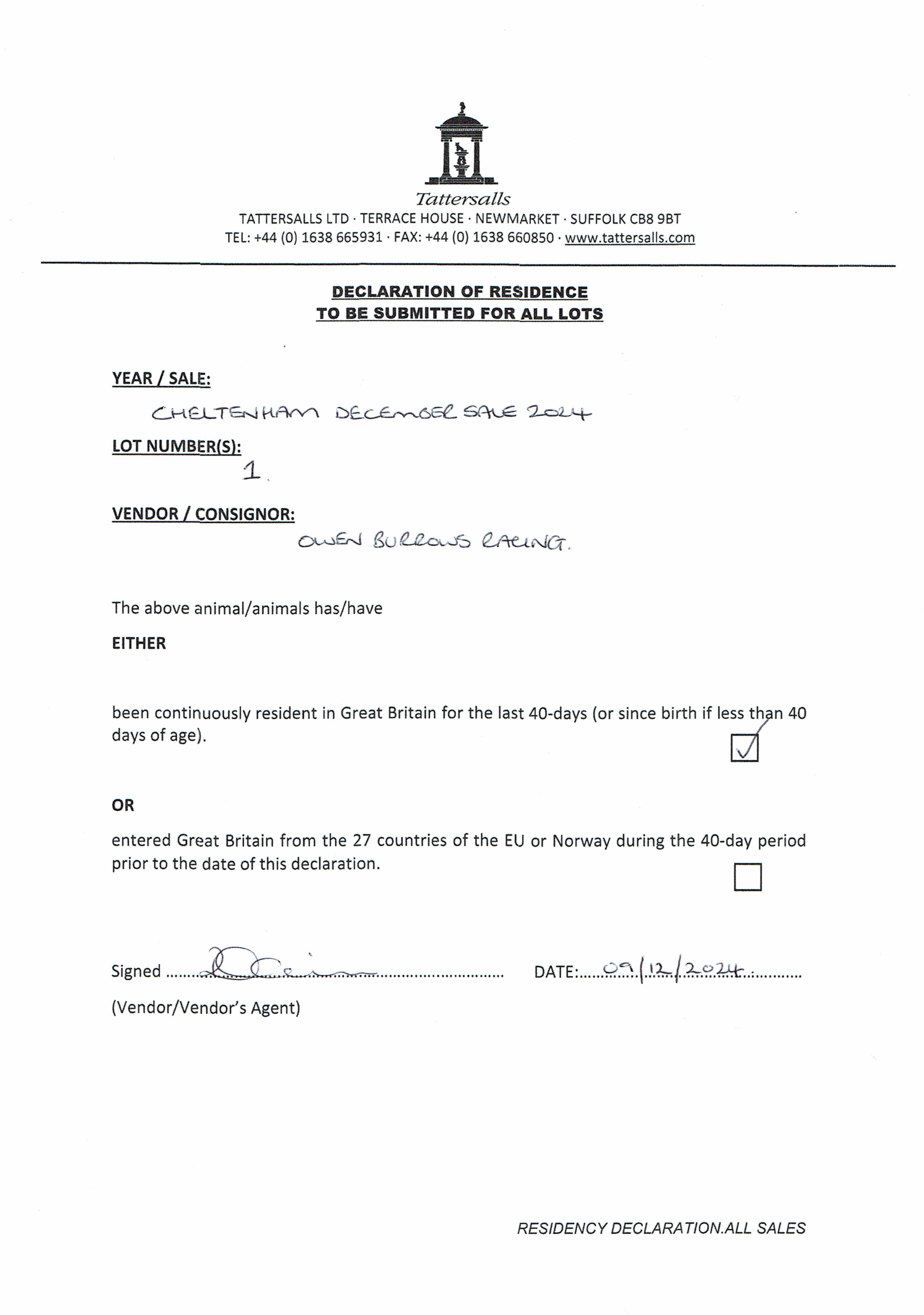 Consignor: Owen Burrows Racing
