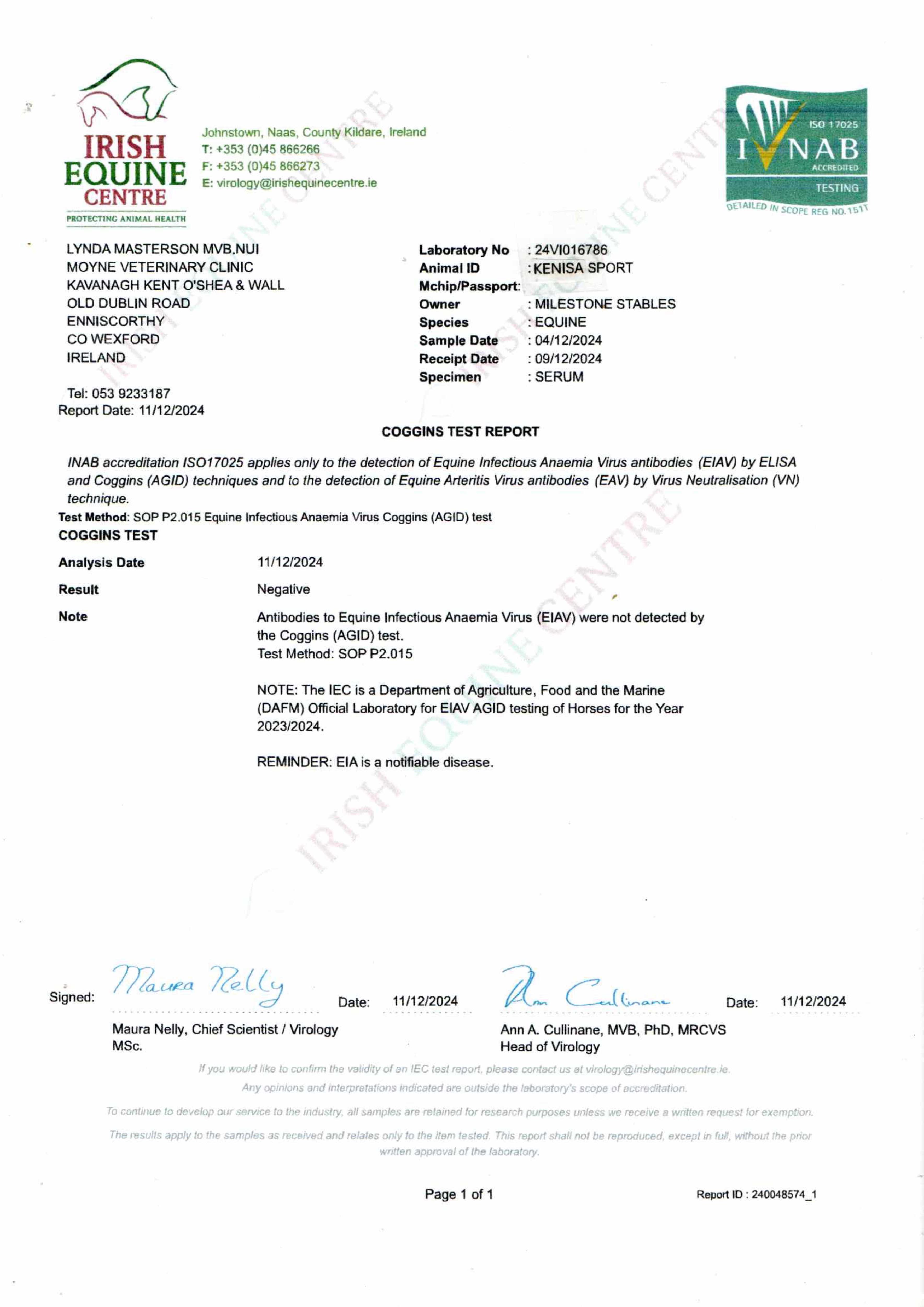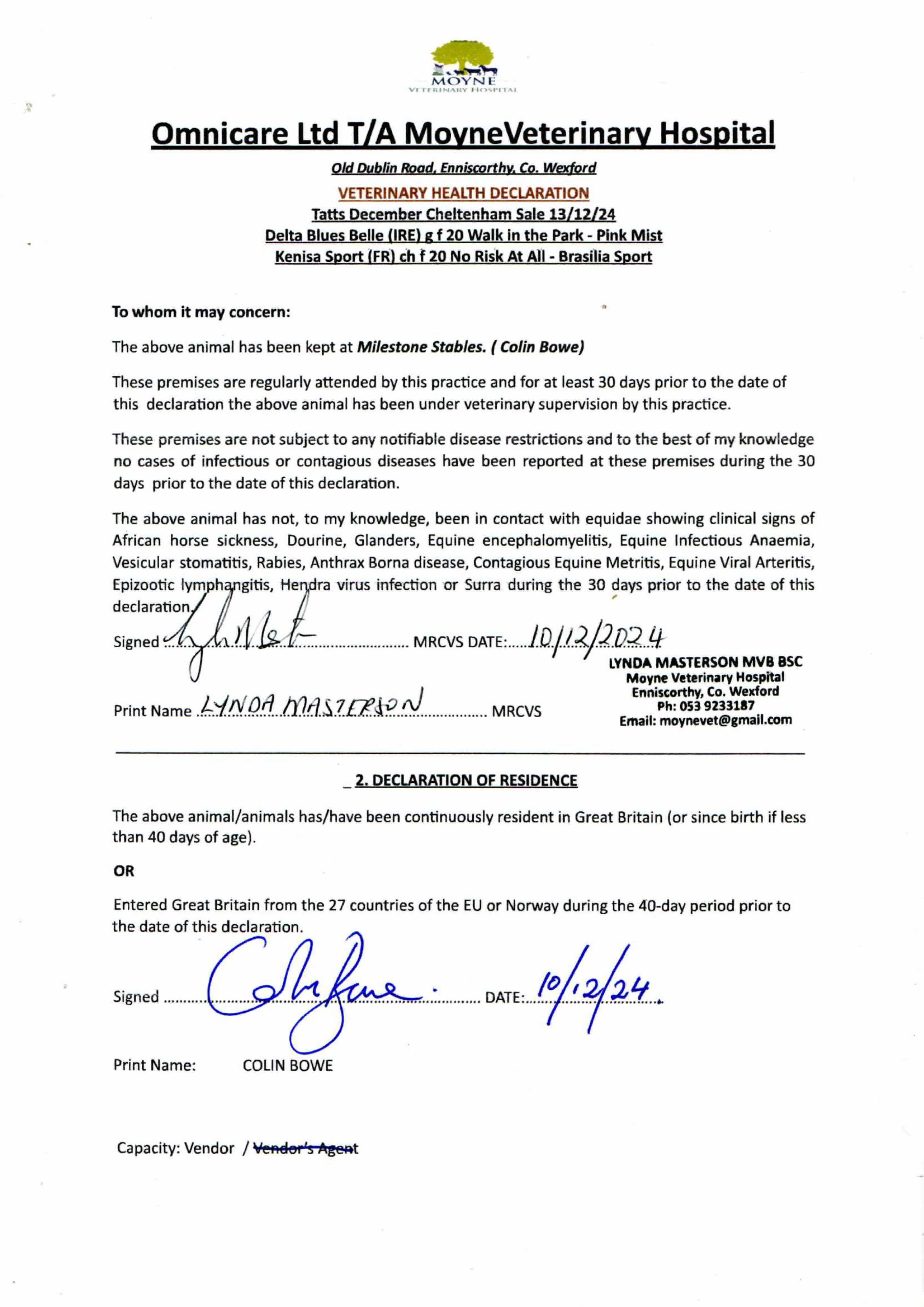 Consignor: Milestone Stables, Ireland (C. Bowe)