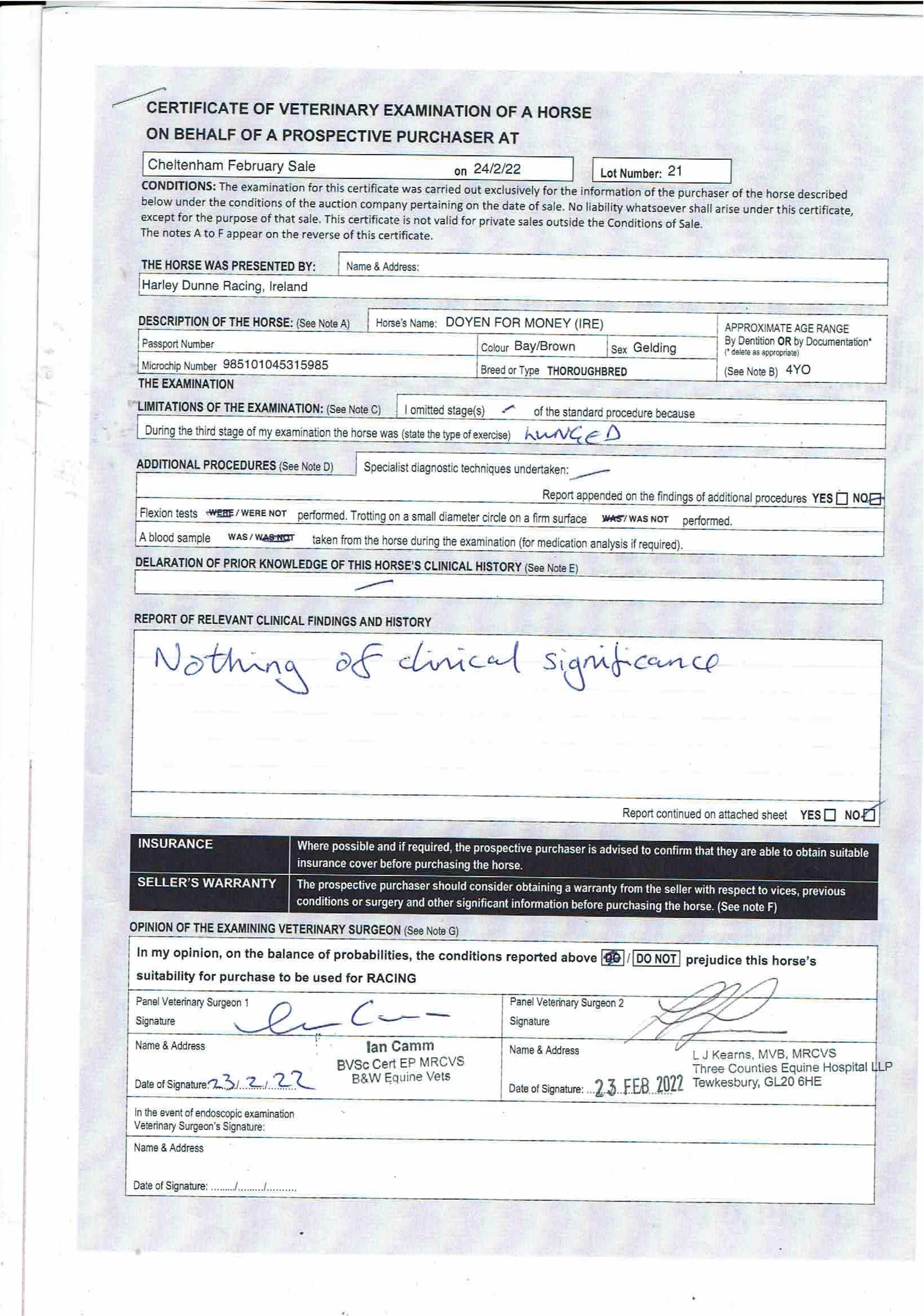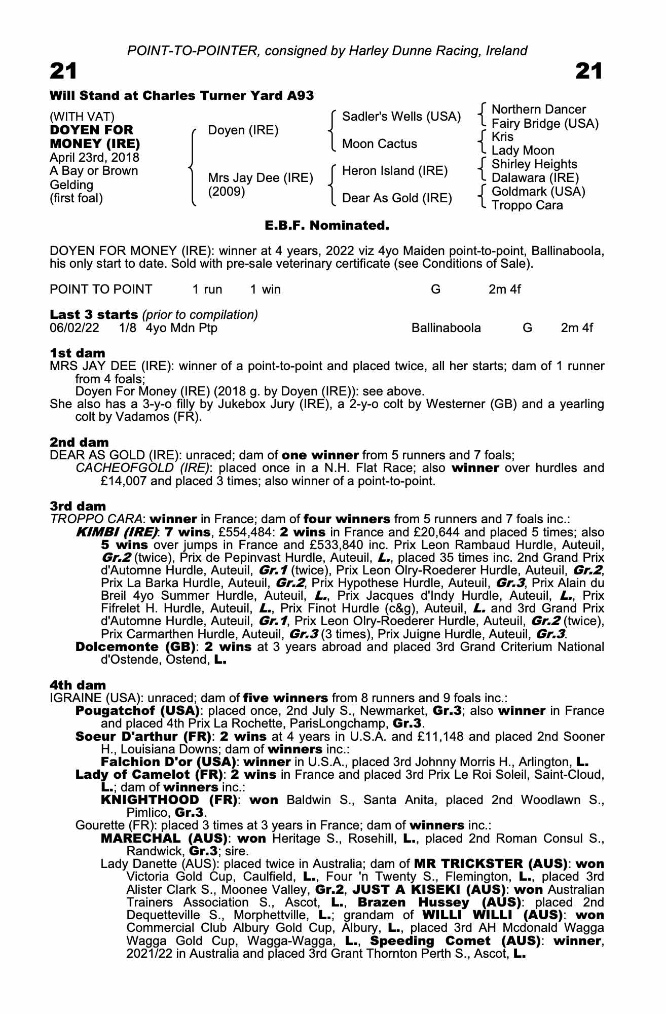 An impressive wide margin winner of his debut at Ballinaboola in a maiden which has produced, among other top graduates, Envoi Allen and Appreciate It. There was some well touted placed horses in this contest and they seemed to run with great credit so it is a notable achievement that this fellow was able to draw so far clear in the closing stages. He looks a very straight forward type who made all the running on his debut here and his ability, willingness and professionalism mark him out as a leading sort for any serious shortlist at this sale. His pedigree looks most versatile with a mix of smart French hurdlers and US flat performers. This fellow could have a number of routes available to him for new connections.
