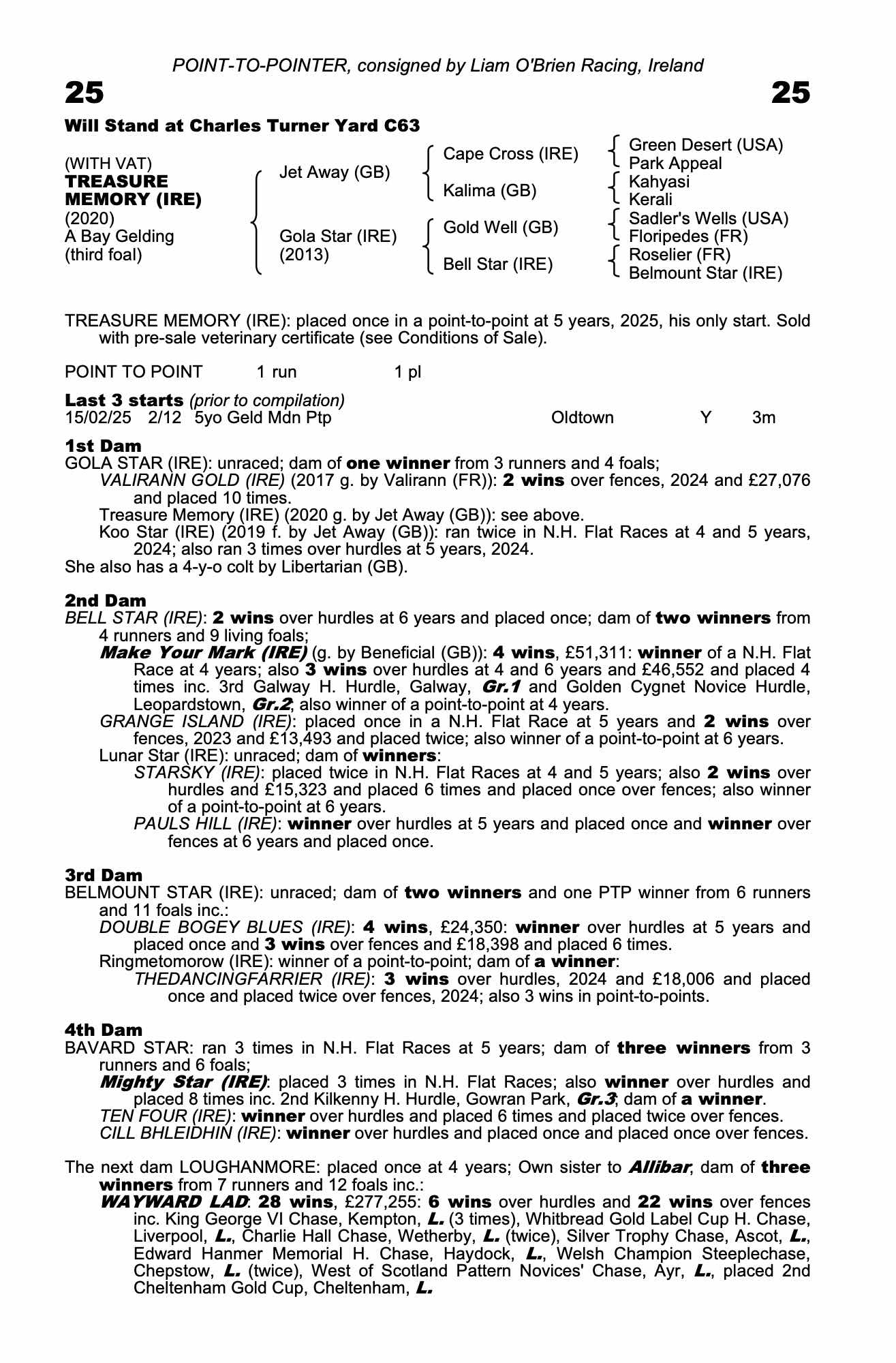 Treasure Memory made a strong start to his career when finishing a very encouraging second on his debut at Oldtown last Saturday. One of just four newcomers in the 12-strong field, he certainly outran his 10/1 starting price, as a mistake three-out failed to halt his forward move from off the pace. Travelling strongly into a share of the lead on the long run to the penultimate fence, it was only approaching the last that he dropped into third behind two previously placed rivals. Inheriting second after the last, he kept on to the line, rallying to hold off the late efforts of the Boulta runner-up Country Code in a race that clocked the quickest time of the three-mile races on the card. With so many proven rivals around him, it has to give great confidence to the performance that he produced.