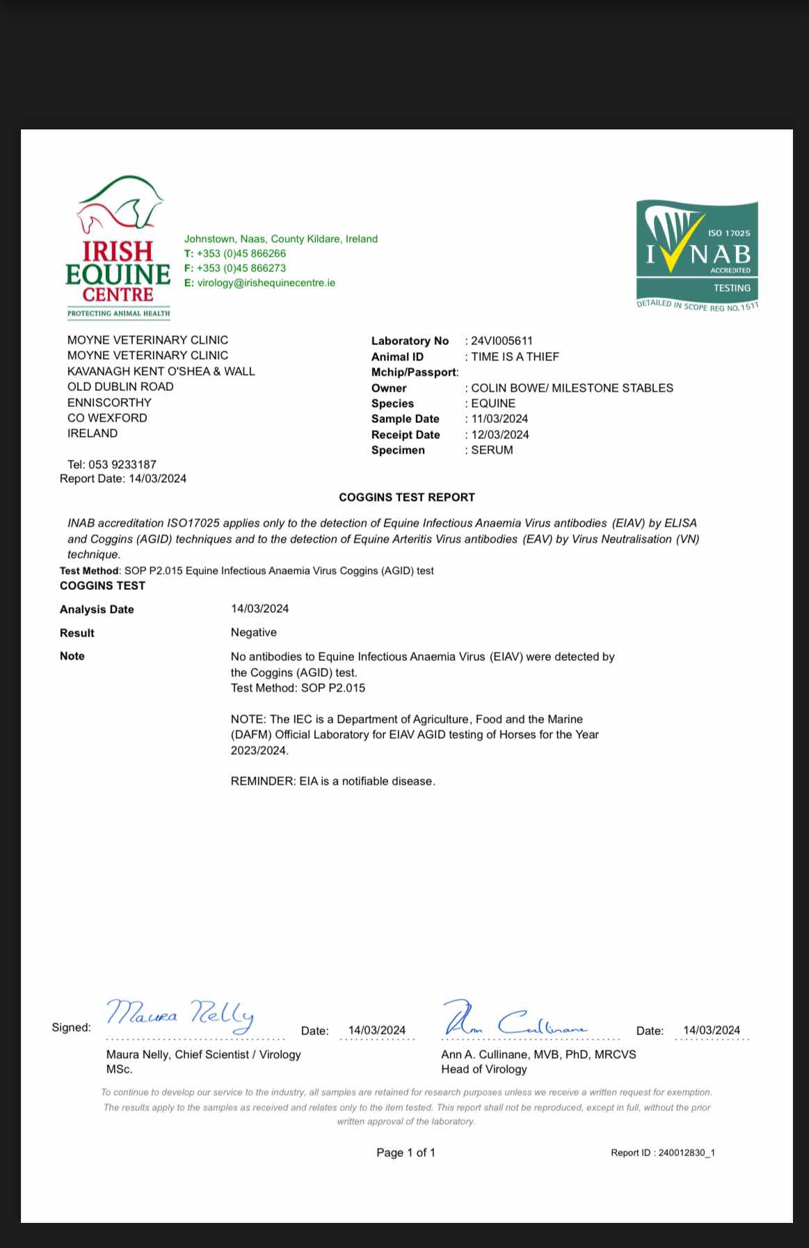 Consignor: Milestone Stables, Ireland (C. Bowe)