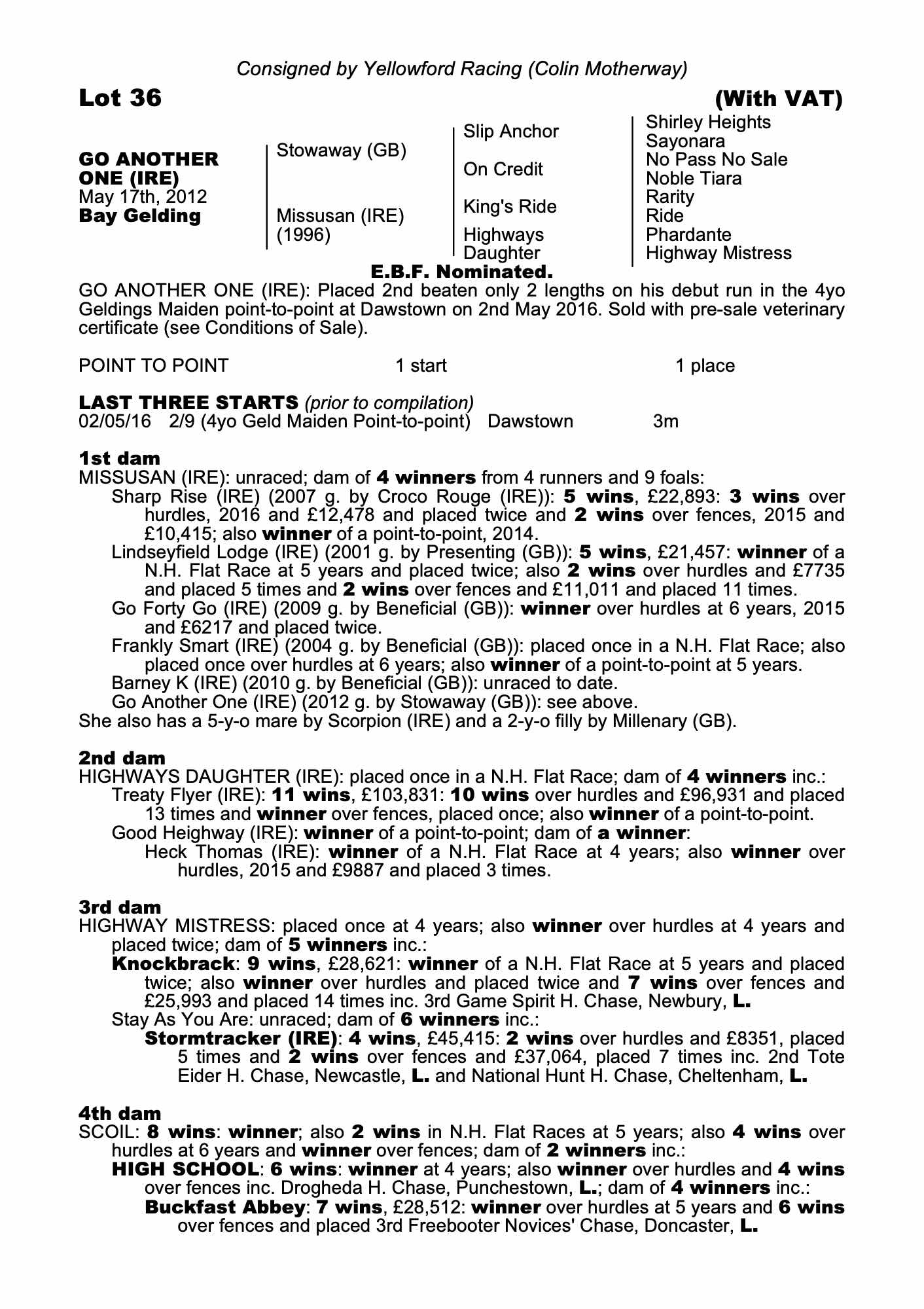 Consignor: Yellowford Racing (Colin Motherway)