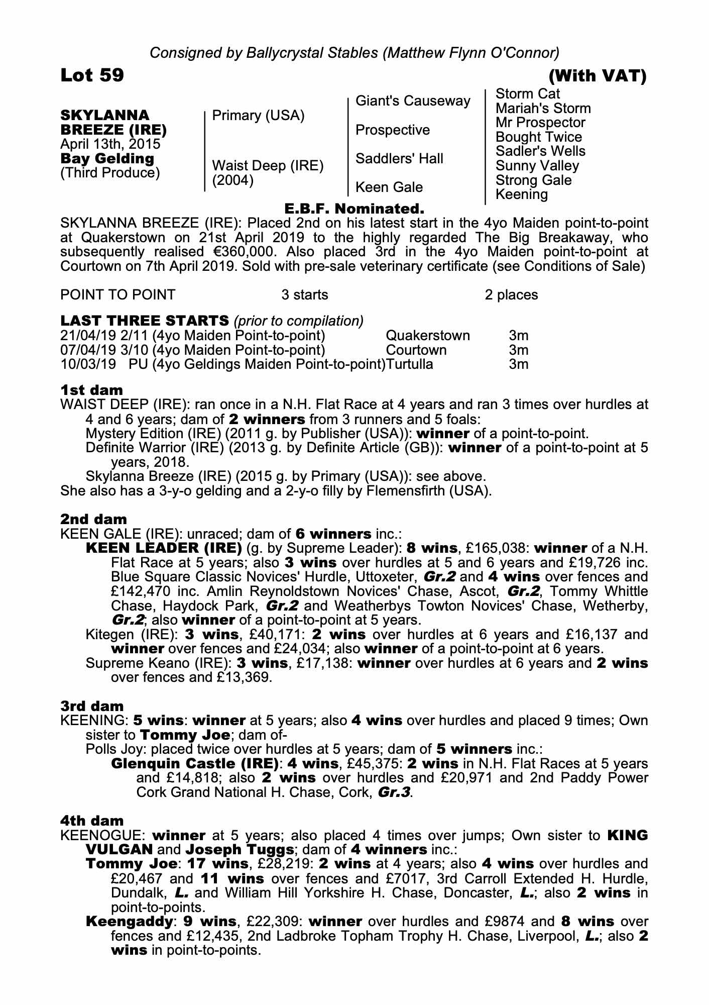 Consignor: Ballycrystal Stables (Matthew Flynn O'Connor)