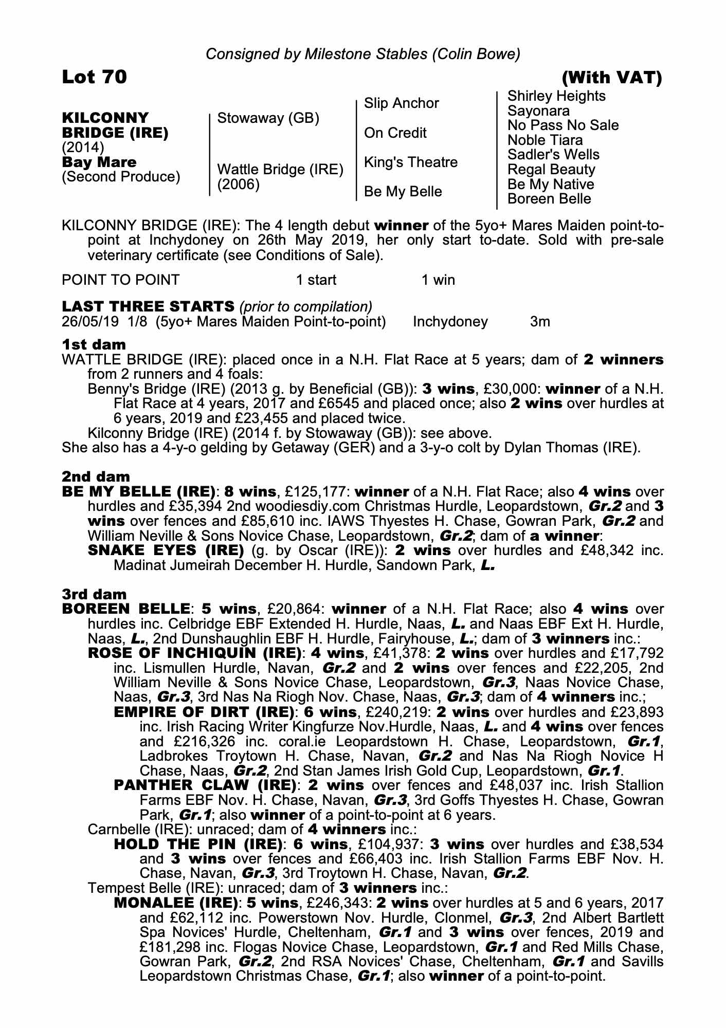 Consignor: Milestone Stables (Colin Bowe)
