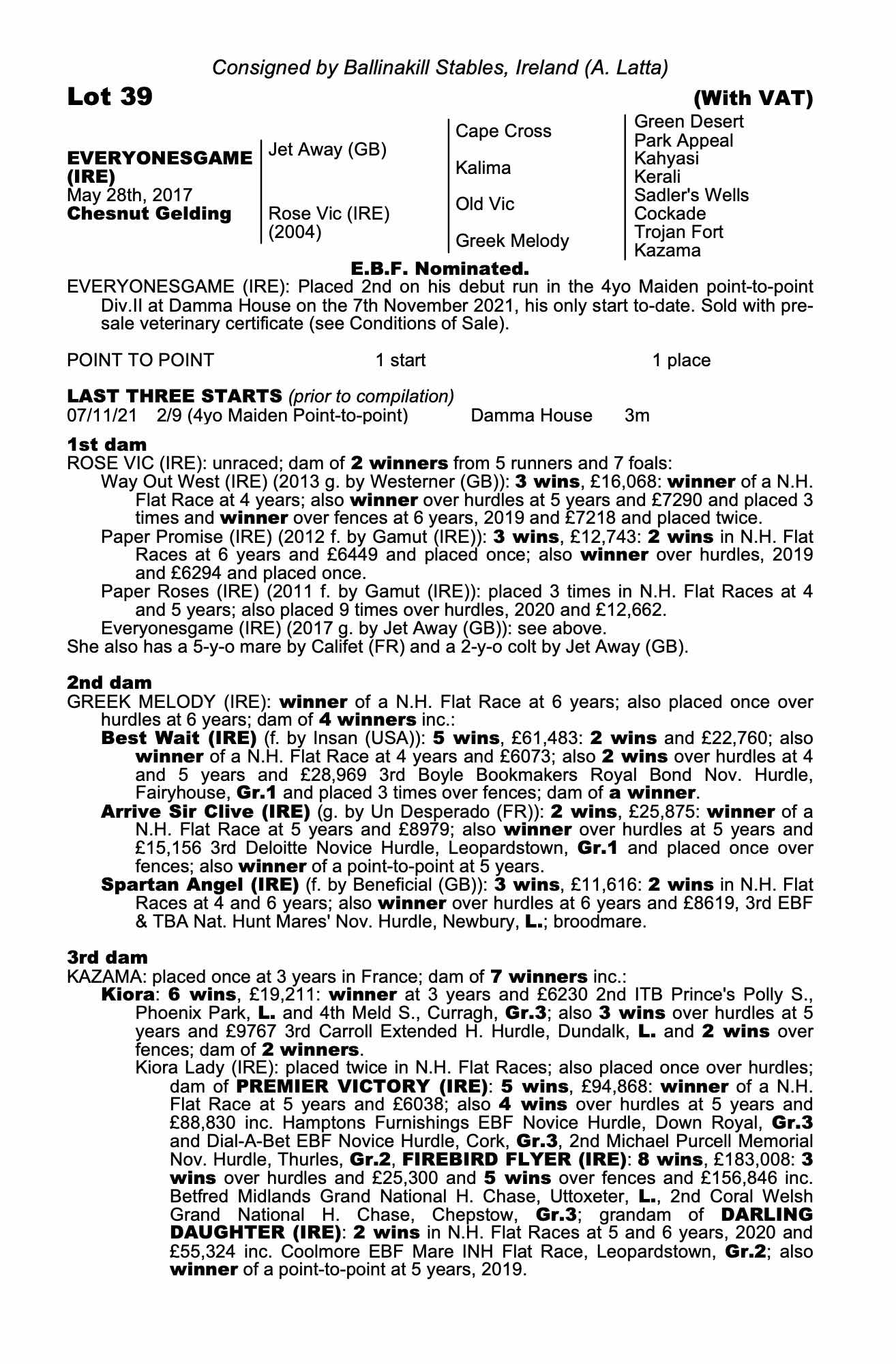 By the very exciting Jet Away and out of an Old Vic sister to Westend Star this fellow was always destined to have ability. He made his debut at Damma House last Sunday and in doing so ran into the more experienced Sporting Mike who had been fourth on debut in a competitive maiden at Tipperary so for this fellow to force the judge to separate the pair he has posted a hugely promising debut effort. He clearly has a notable amount of ability and will only progress for this run. His grandam is by Roselier which is further enhancing his bloodlines and he is from the family of many top class winners including First Flow. His battling qualities were also worth complimenting following this effort.