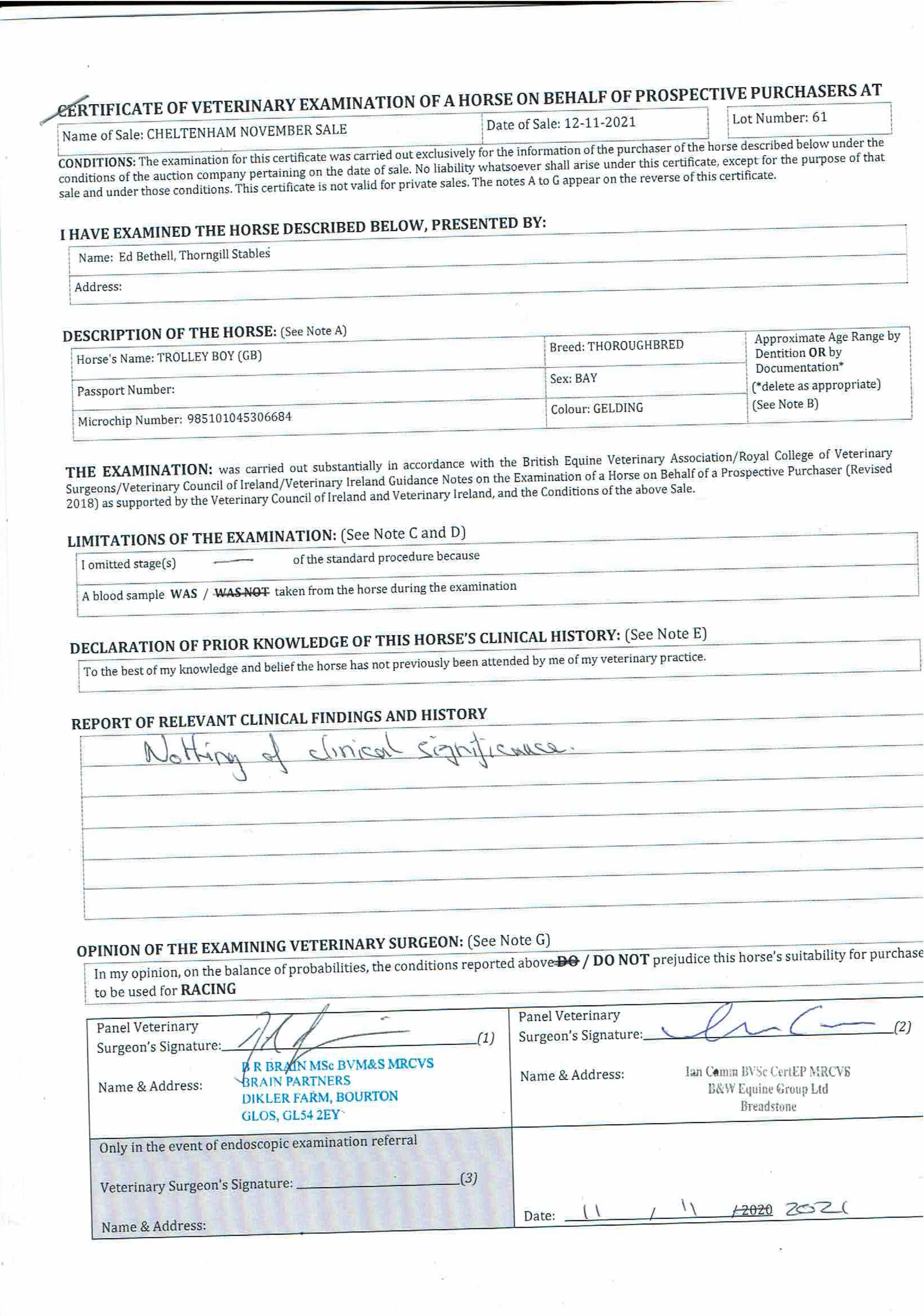 The imposing 3yo son of Casamento made a bright start to his career when placed second in the “Junior” NH Flat Race at Market Rasen on 16th October for Ed Bethell. Well positioned he kicked for home turning in but ran a little green in the closing stages. He could not quite match the speed of the eventual winner in the final furlong but this scopey individual galloped all the way to the line in taking fashion. He will surely benefit markedly from this experience and this fine big horse has a big future ahead of him.