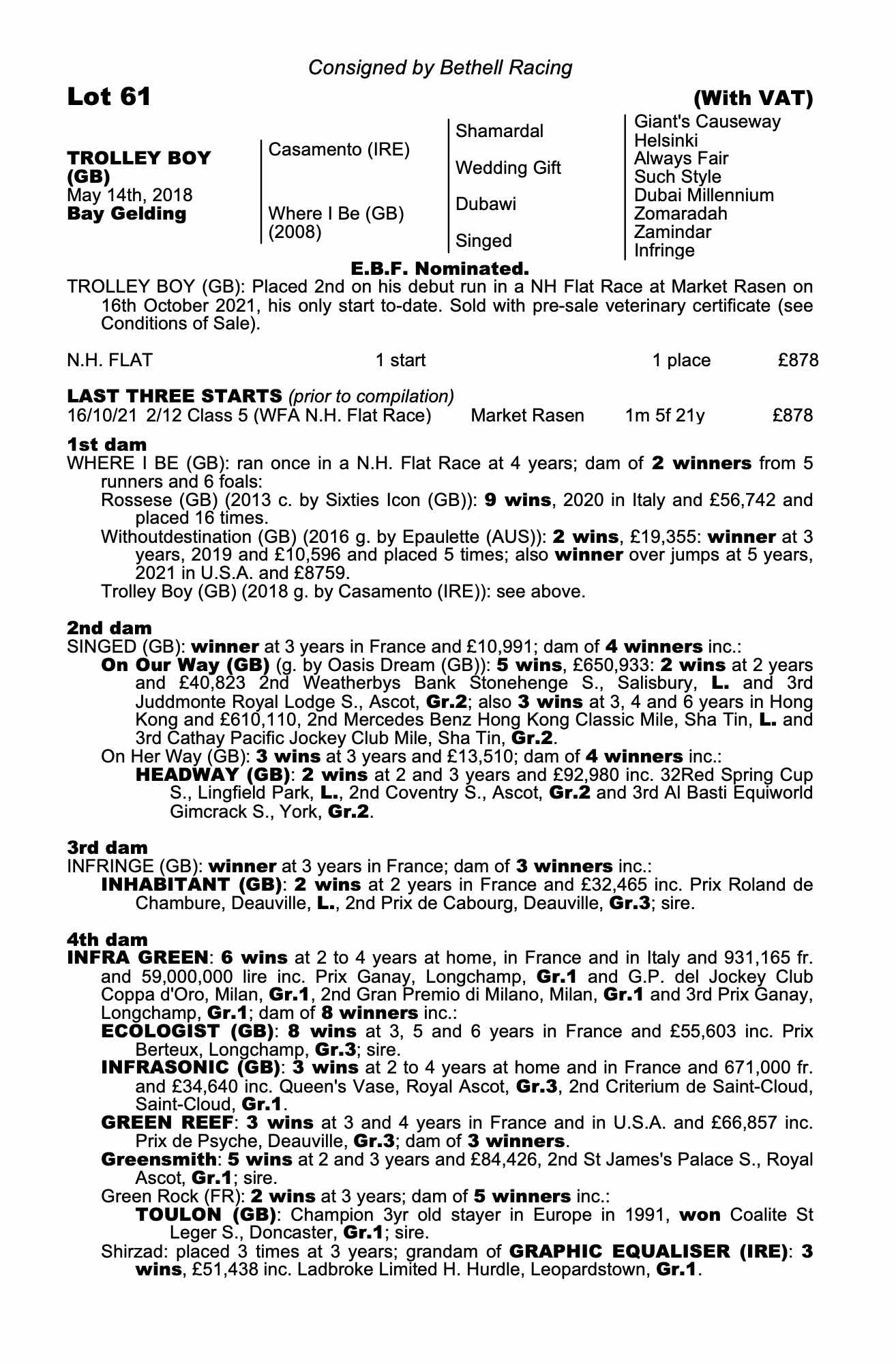 Guineas Horses in Training Sale 2022 lot 50, Bethell Racing=>Neil Mulholland Racing 50,000 gns