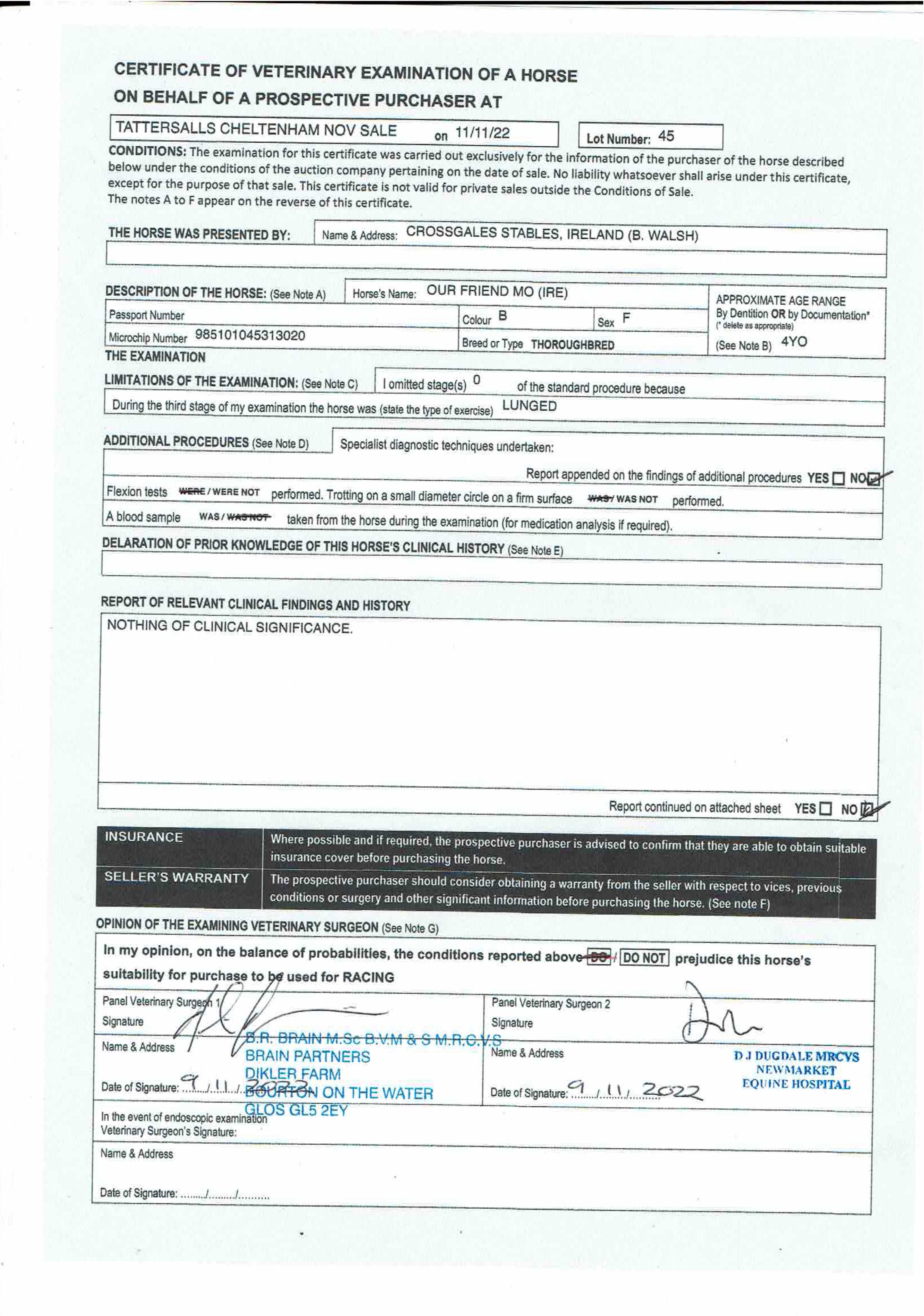 Consignor: Crossgales Stables, Ireland (B. Walsh)