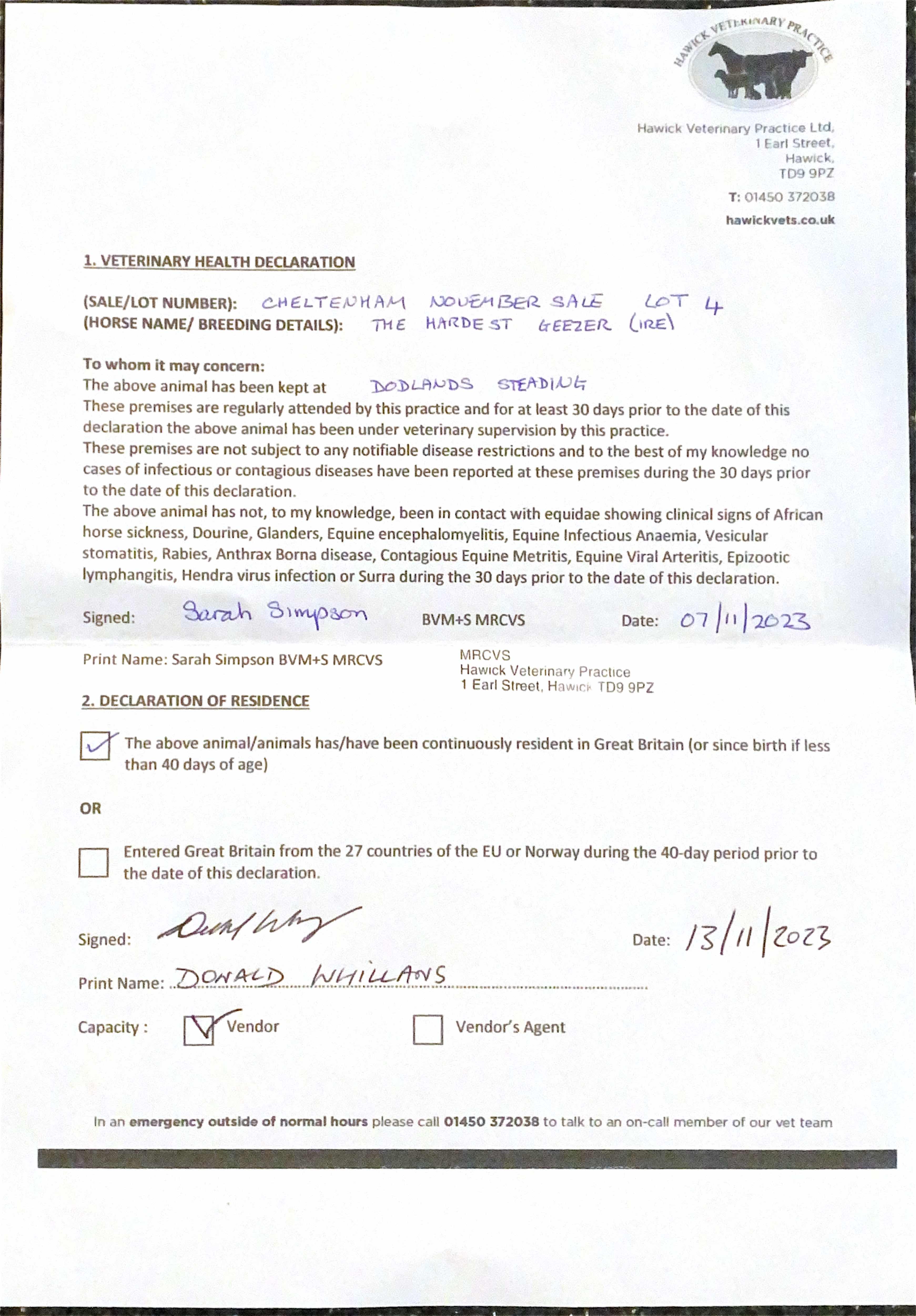 Consignor: Donald Whillans Racing