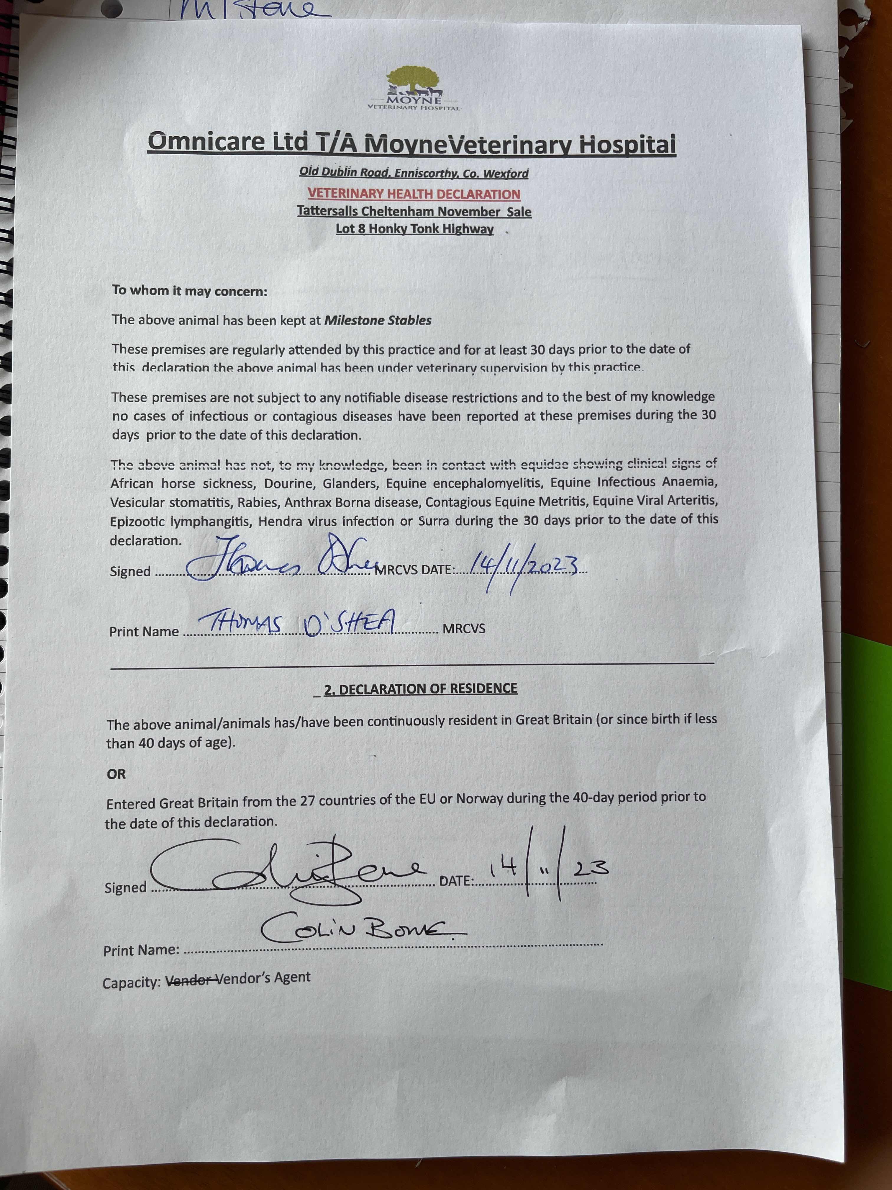 Cheltenham November Sale 2023 lot 12 Moon Over Mexico (IRE) (G. by Soldier of Fortune (IRE)), Milestone Stables, Ireland (C. Bowe)=>Highflyer Bloodstock / Charlie Longsdon Racing £30,000