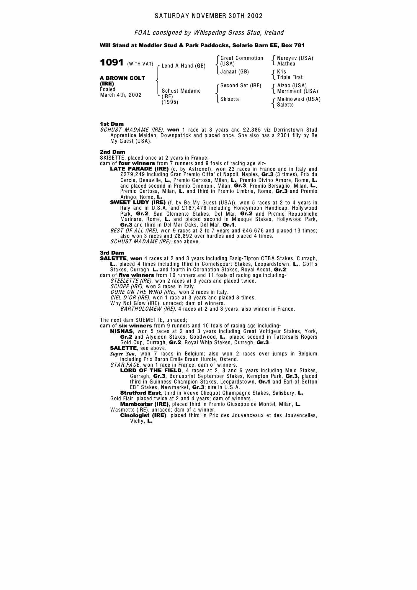 Breeders Flat Sale 2002 lot 141 F. by Be My Guest (USA) 2001, Ardoon Stud=>Kerr and Co. Ltd. €11,000