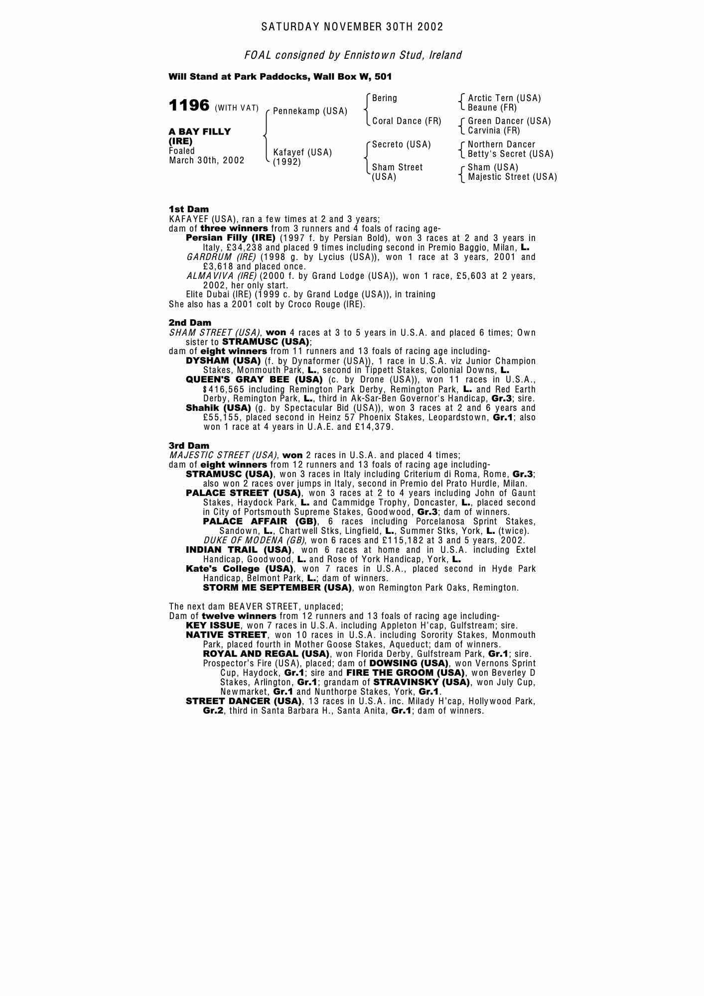 Houghton Yearling Sale 2002 lot 16 C. by Croco Rouge (IRE) 2001, Lynn Lodge Stud, Ireland=>McKeever St Lawrence 85,000 gns