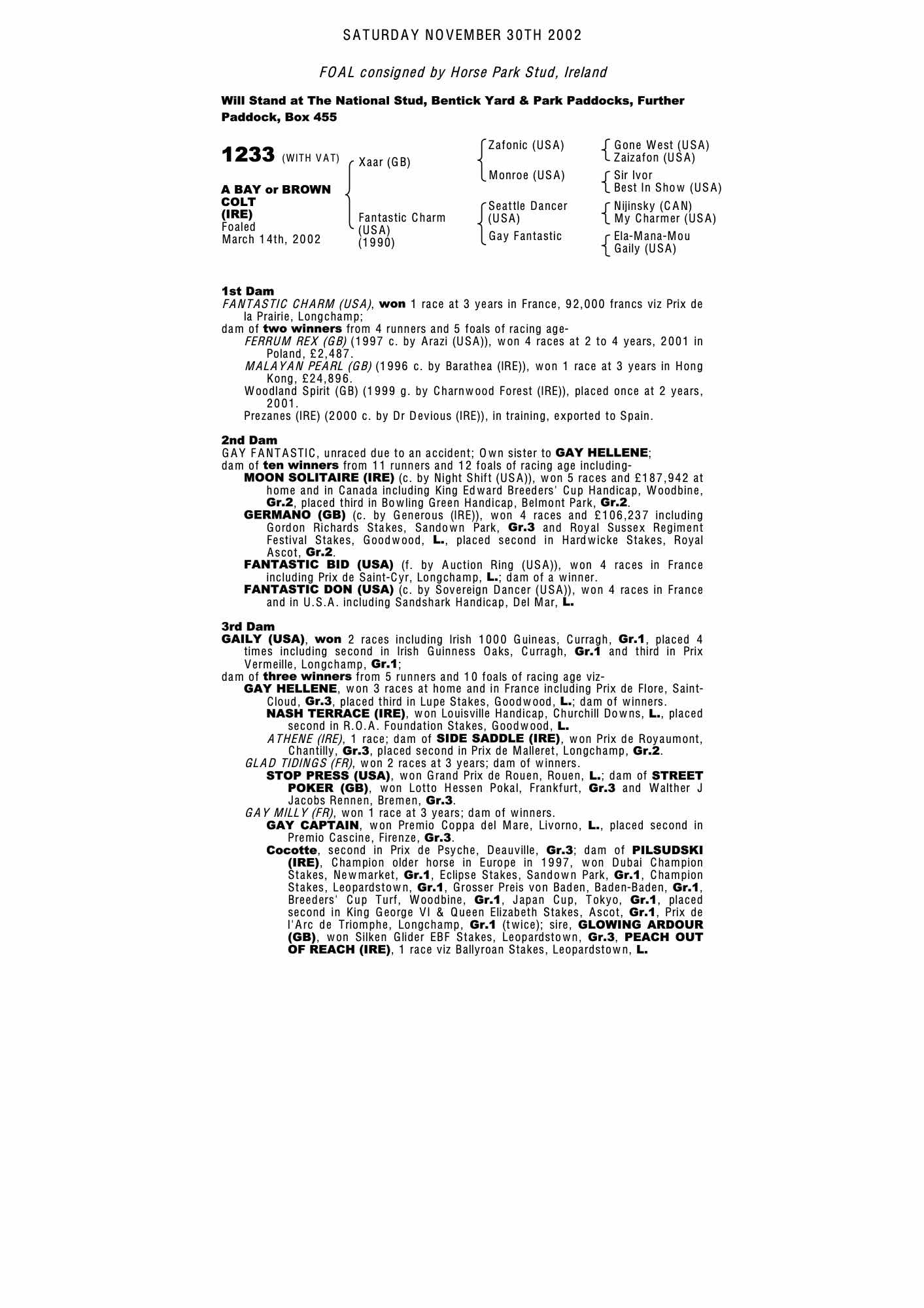 October Yearling Sale 1998 lot 455 C. by Arazi (USA) , Ted Voute, Agent=>Pol-Kaufring Co 14,000 gns