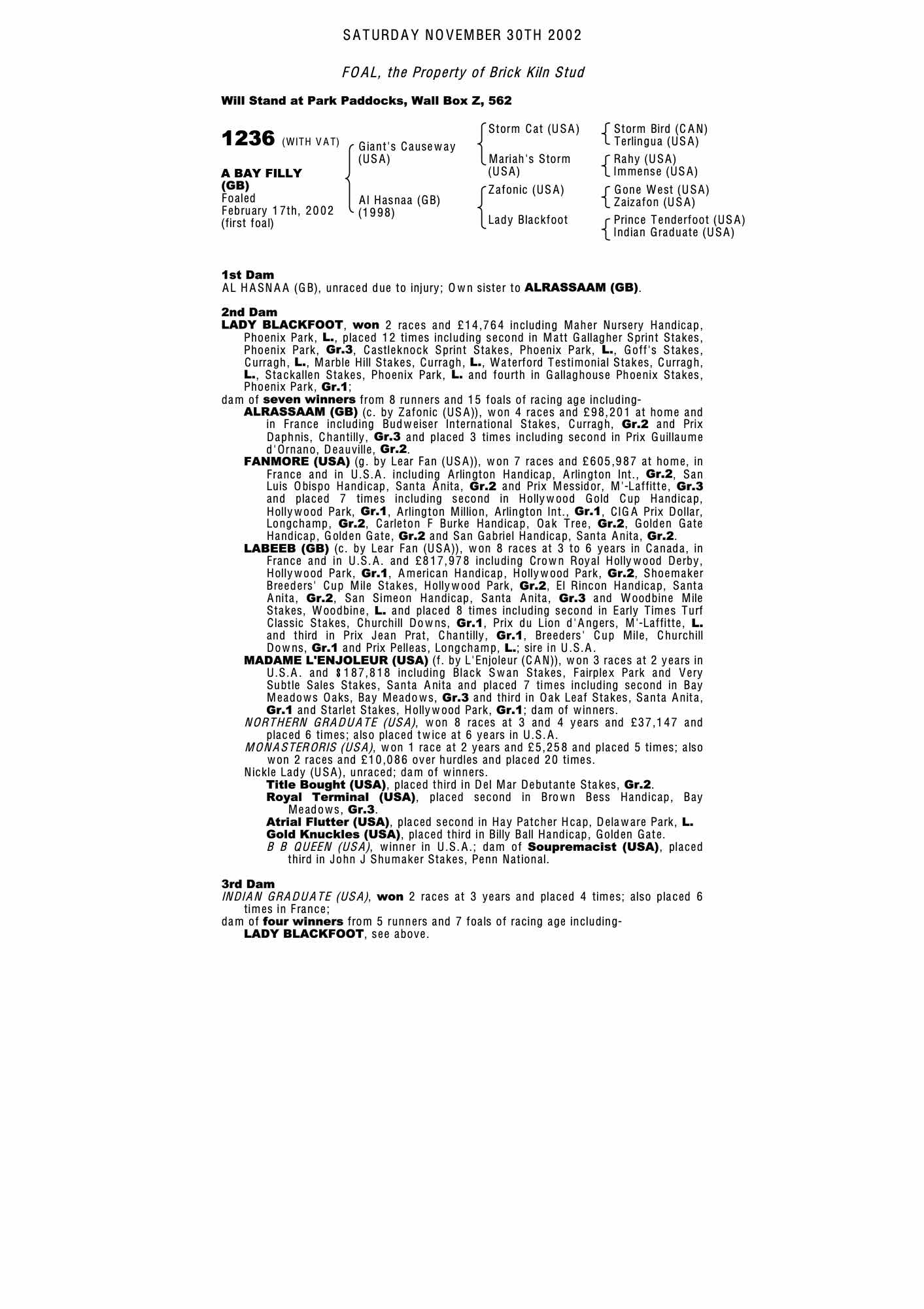 October Yearling Sale, Book 1 2003 lot 126, Brick Kiln Stud=>Bozzi Bloodstock Services 35,000 gns