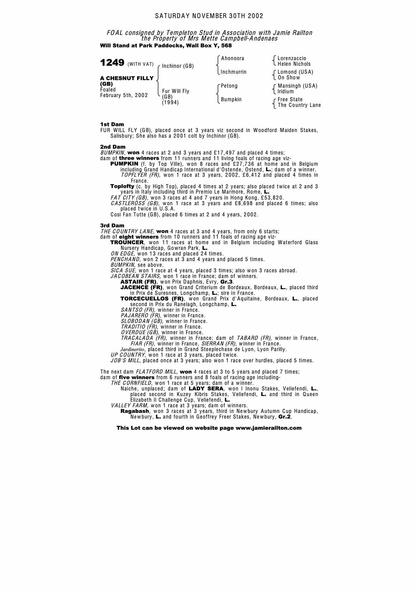 Autumn Horses in Training Sale 2003 lot 760 So Will I (GB) (C.), Kingwood House Stables=>Shadwell Estate Company 160,000 gns