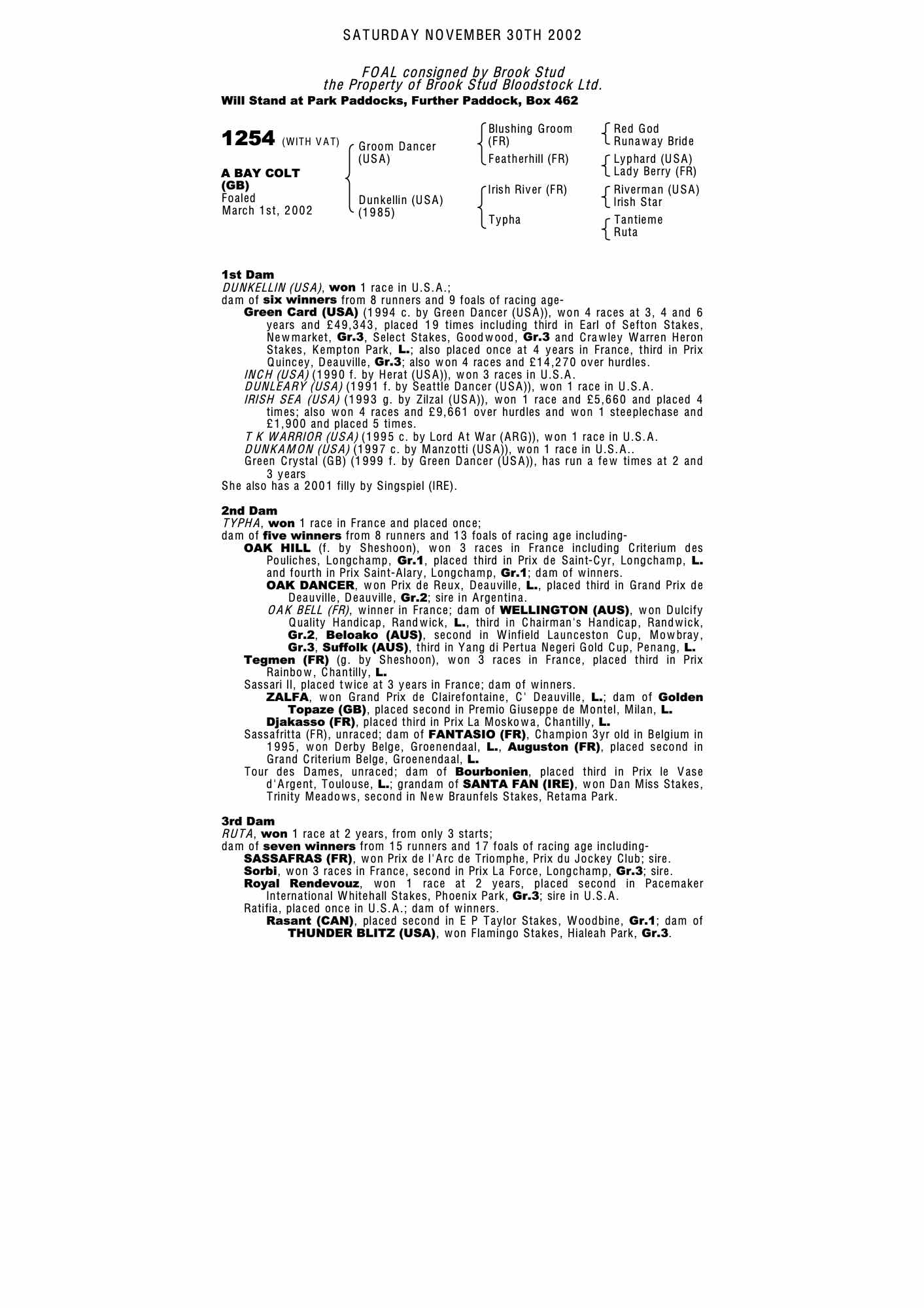 December Yearling Sale 2002 lot 42 F. by Singspiel (IRE) 2001, Goldford Stud=>CASH 32,000 gns