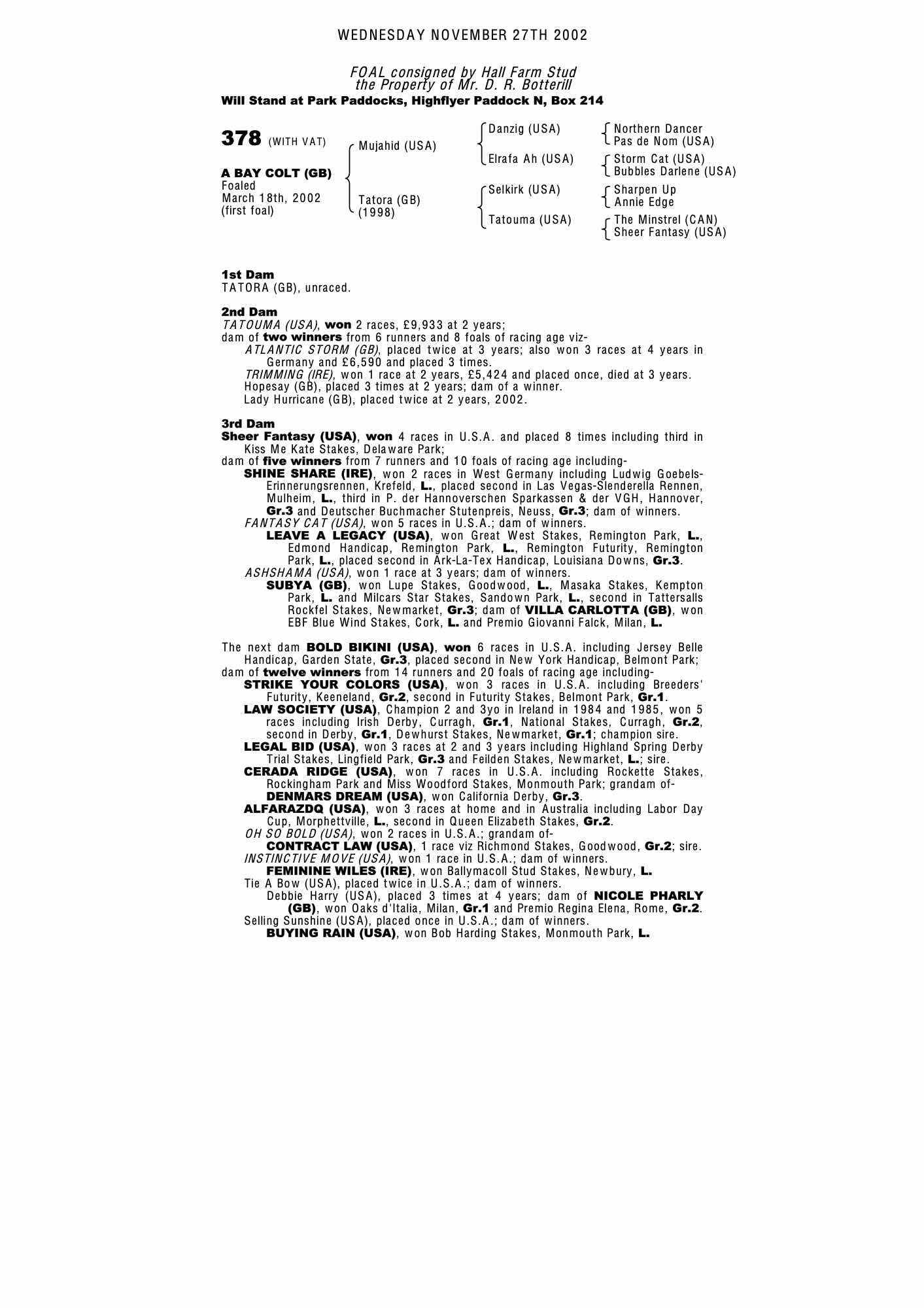 Consignor: Hall Farm Stud