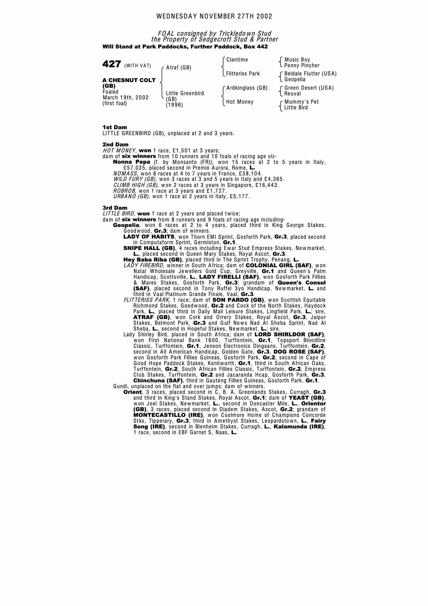Autumn Horses in Training Sale 2005 lot 412 Green Pride (GB) (C. by Piccolo (GB)), East Everleigh Stables=>Stall Sarah 40,000 gns