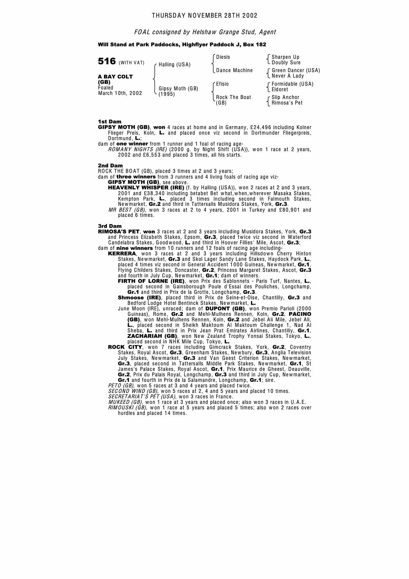 Breeze Up Sale 2002 lot 74 C. by Night Shift (USA) 2000, Lynn Lodge Stud, Ireland (Agent)=>Maurice Sines 8,000 gns