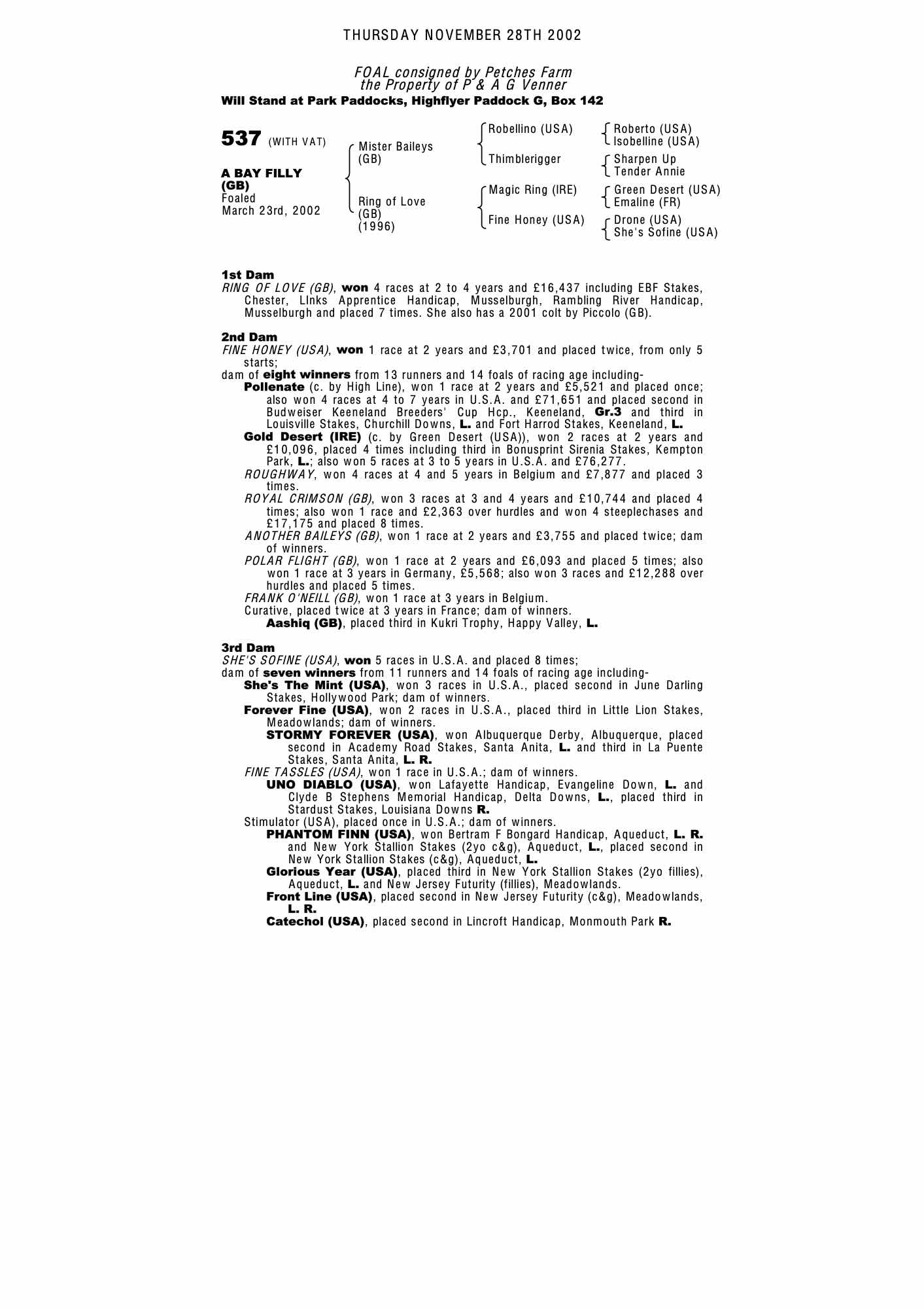 October Yearling Sale, Book 2 2003 lot 1237, Shefford Valley Stud=>R Guest 5,000 gns