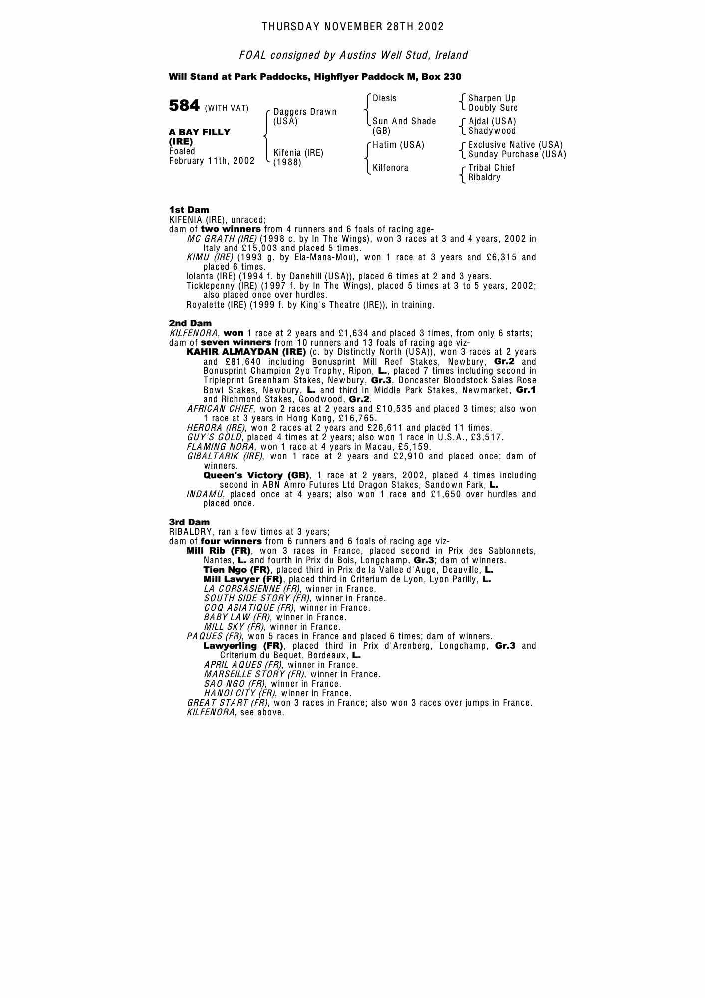 Autumn Yearling Sale 2000 lot 1669 F. by King's Theatre (IRE) , Leinster Stud, Ireland=>Lot Not Sold 4,800 gns