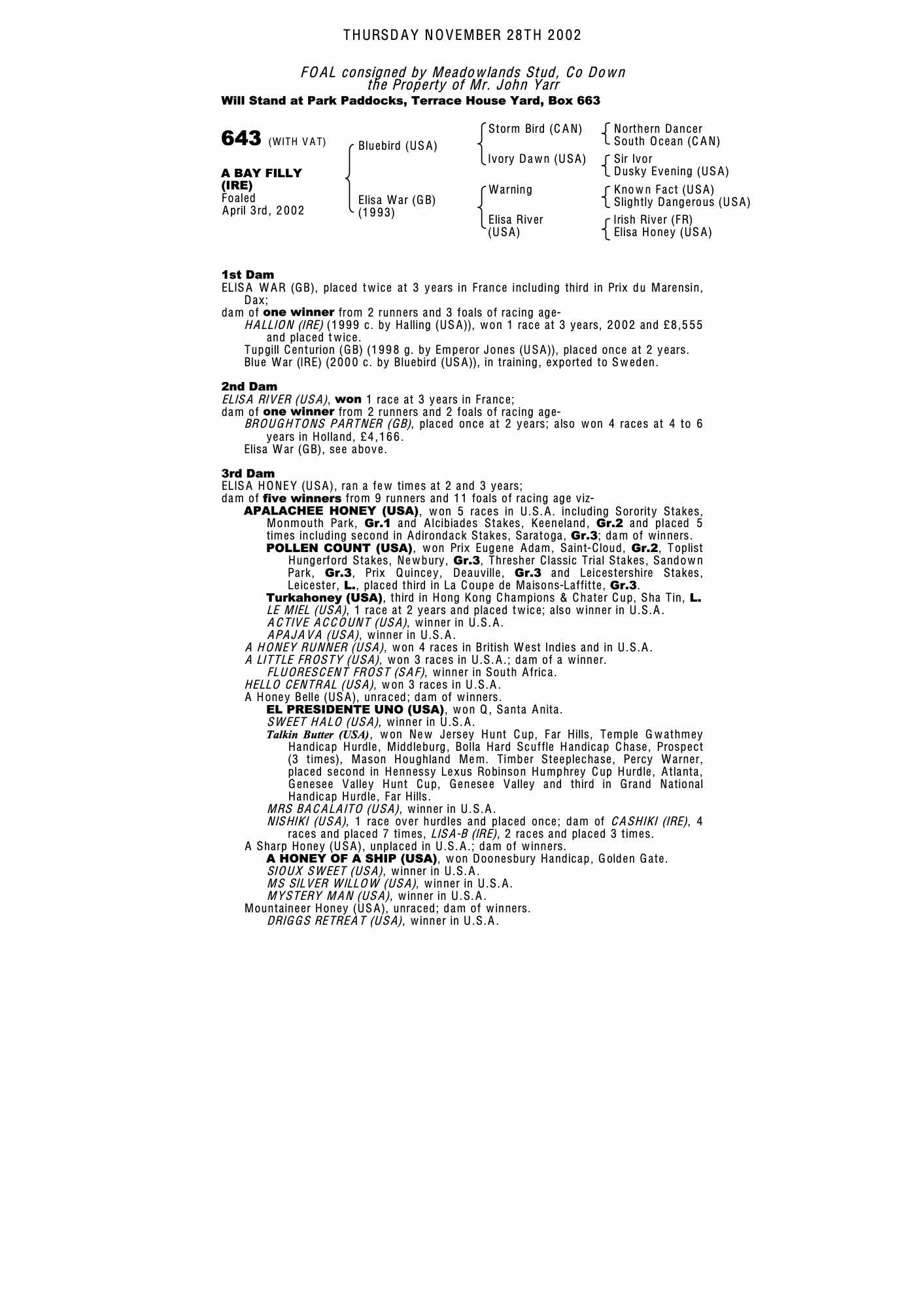Consignor: Meadowlands Stud, Ireland