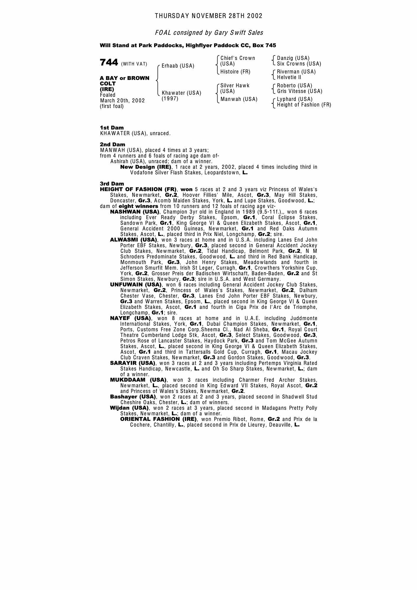 October Yearling Sale, Book 2 2003 lot 1696, Jamie Railton, Agent=>Shadwell Estate Company 50,000 gns