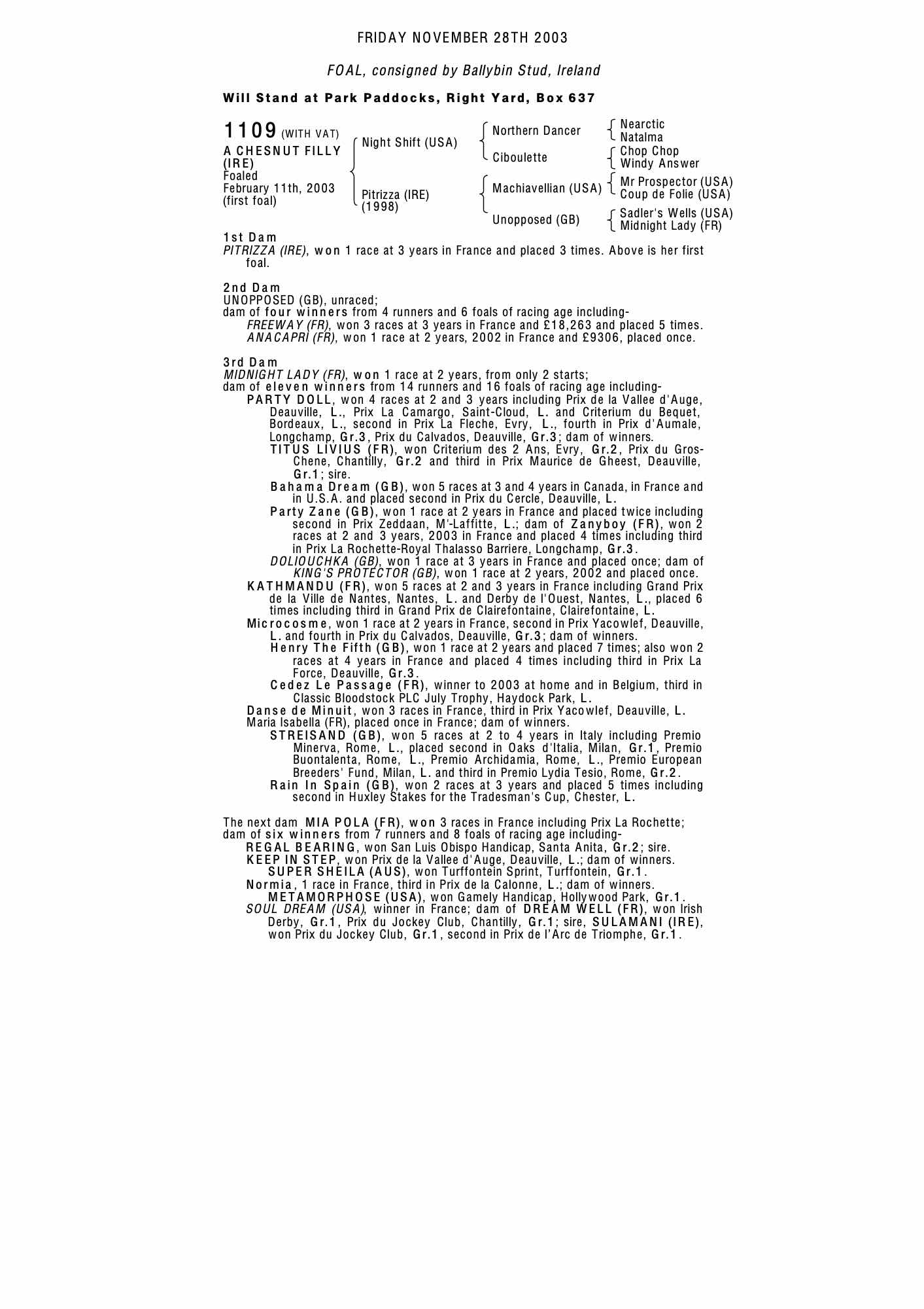 December Foal Sale 2011 lot 1014 F. by Duke of Marmalade (IRE) 2011, Ballybin Stud, Ireland=>Ebor Bloodstock 42,000 gns