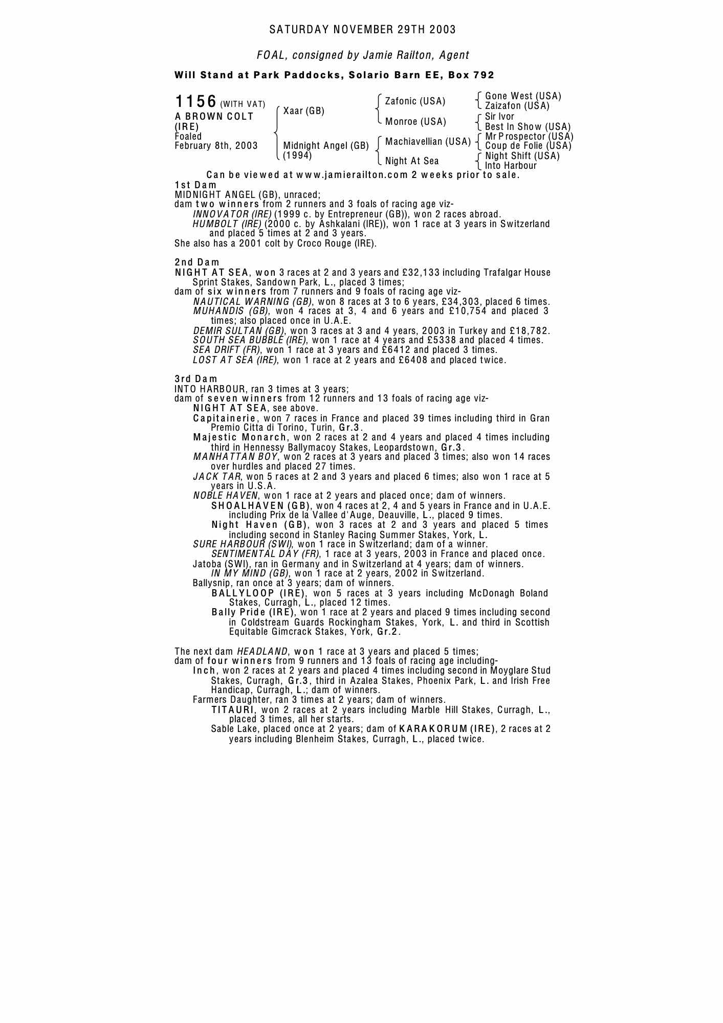 October Yearling Sale 2000 lot 438 C. by Entrepreneur (GB) , Killeen Castle Stud, Ireland=>John Warren Bloodstock 30,000 gns