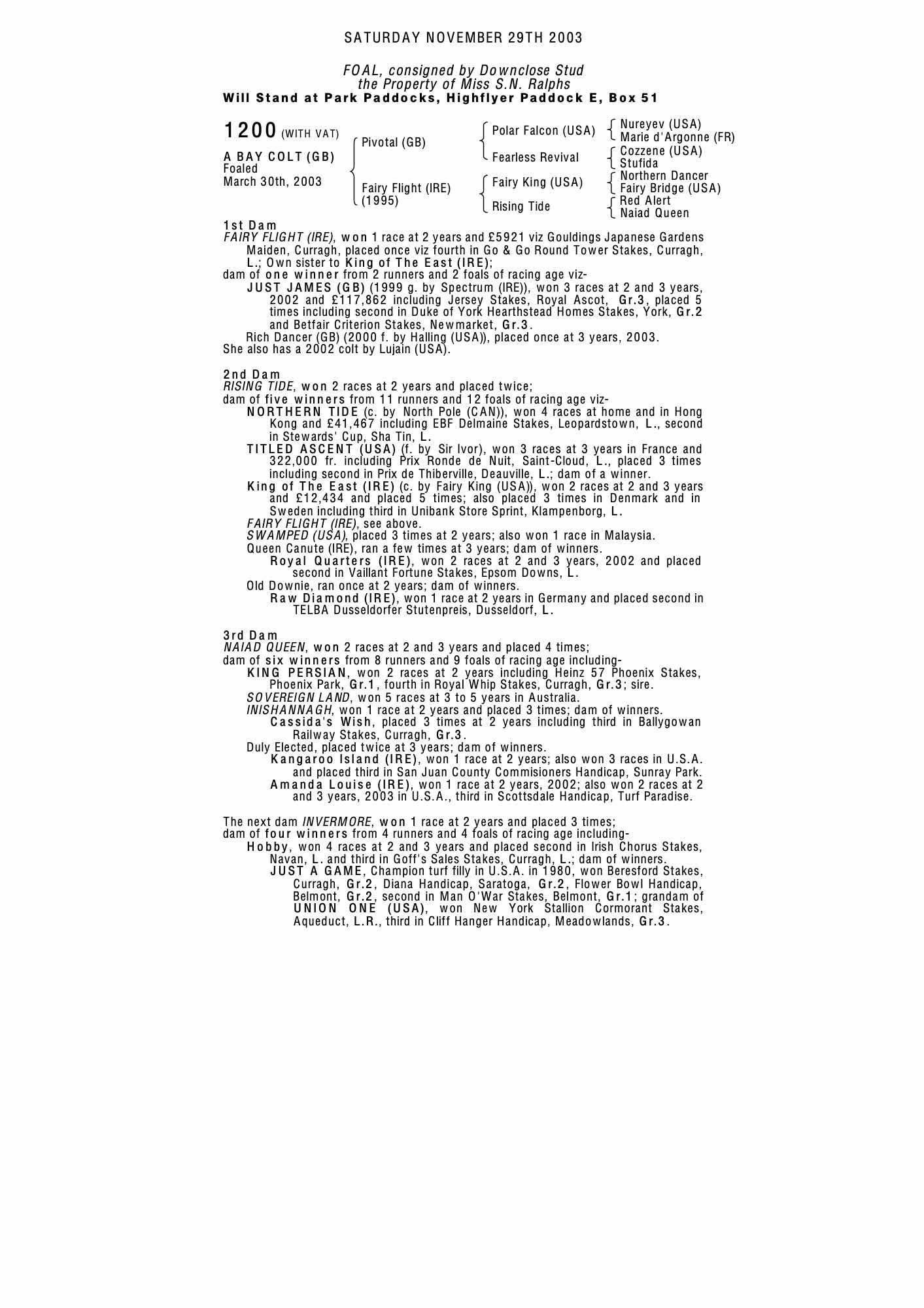 December Foal Sale 2002 lot 1086 C. by Lujain (USA) 2002, Downclose Stud=>Browne Bloodstock Enterprise 18,000 gns