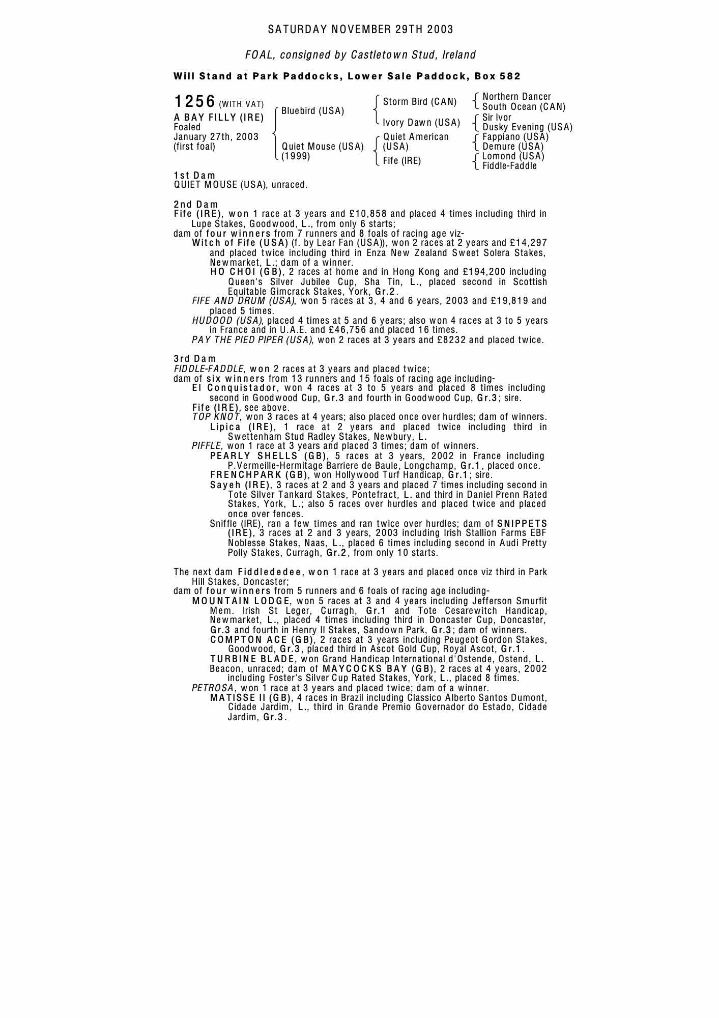September Yearling Sale 2004 lot 2 F. 2003, Rathbarry Stud (Agent)=>Frank Barry €21,000